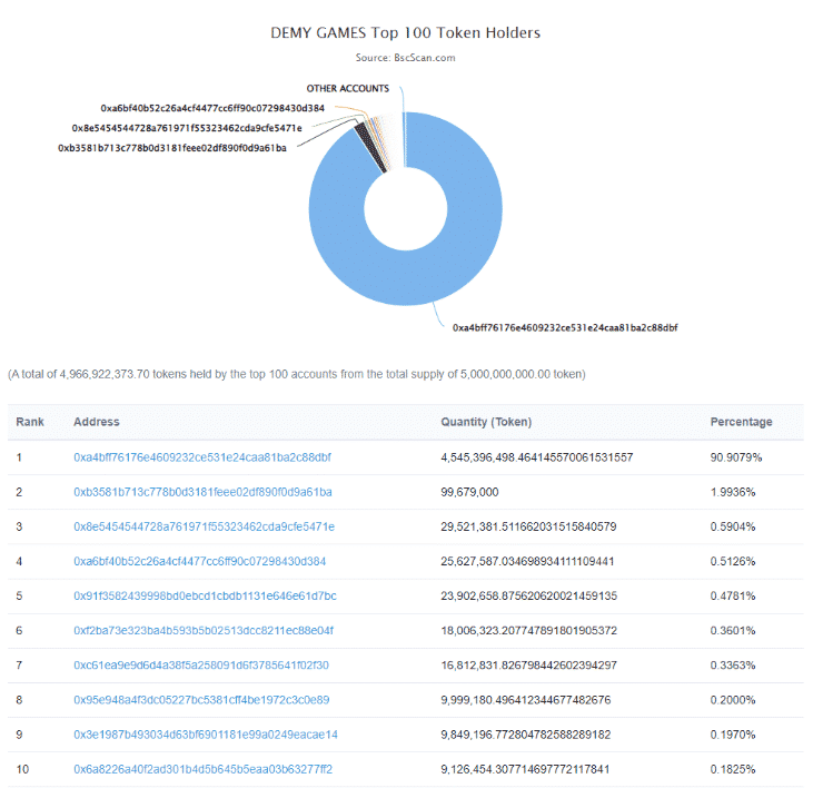 DEMY top holderi. Zdroj: BscScan