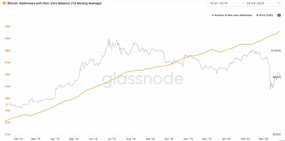 Množstvo aktívnych BTC peňaženiek každý rok rastie exponenciálnym tempom. Zatiaľ čo v roku 2010 ich bolo len niekoľko stoviek, teraz je už takmer 30 miliónov. Len za posledný rok zaznamenala sieť takmer 50 % nárast.