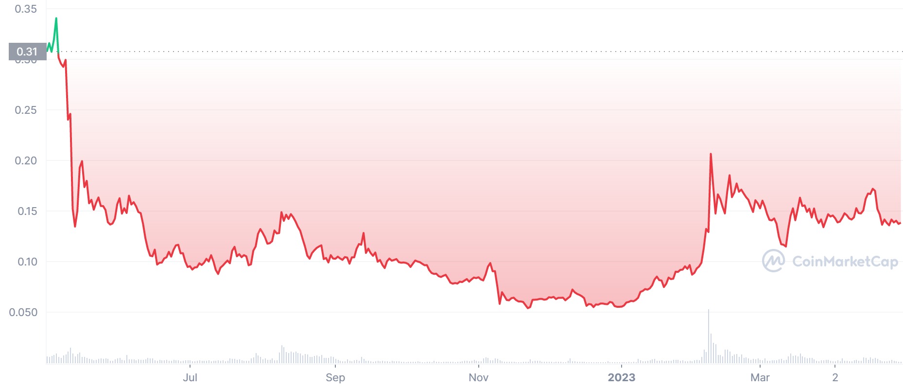 Cena tejto kryptomeny od zalistovania na burzy klesá. Treba ale podotknúť, že na burzy sa dostala v čase najväčšieho kryptomenového ošiaľu. Na druhej strane nám klesajúci trend umožňuje nakupovať The Graph za „výpredajové ceny”.