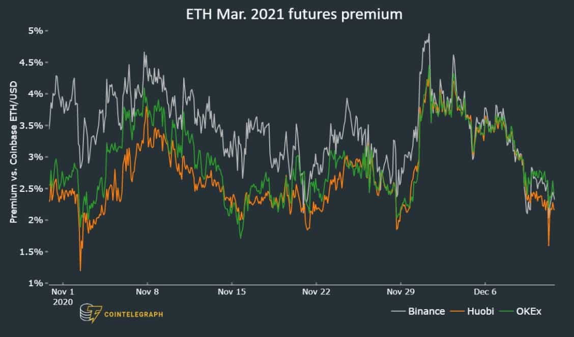 Cenové premium na futures trhoch naznačuje, že profesionálni traderi očakávajú rast Etherea