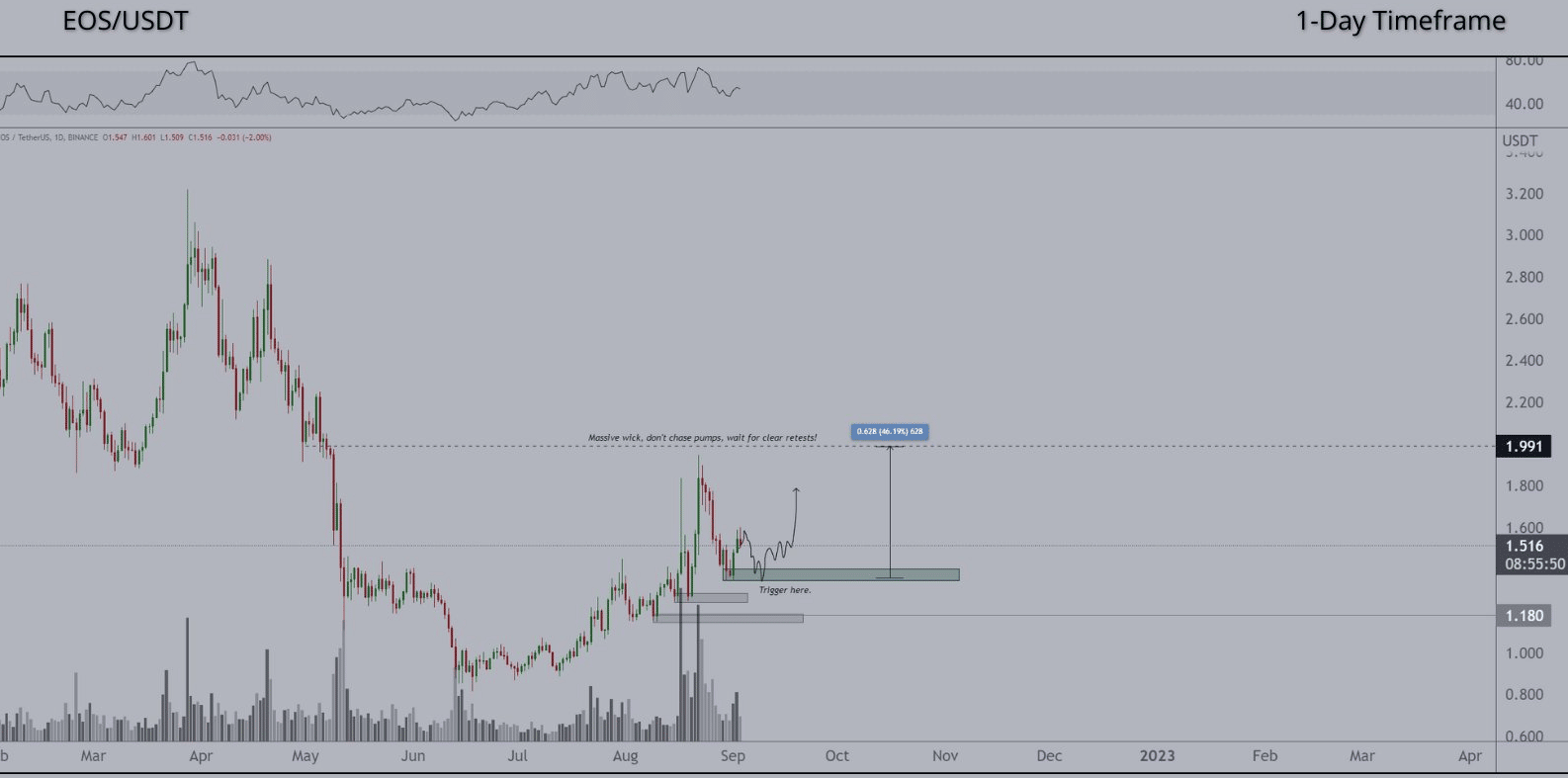 Poppe predpokladá cenový rast aj v prípade protokolu EOS. Tu však upozorňuje na možný pokles k hranici 1,35 dolárov a následne odraz od tejto supportnej zóny až na cenu 2 dolárov.