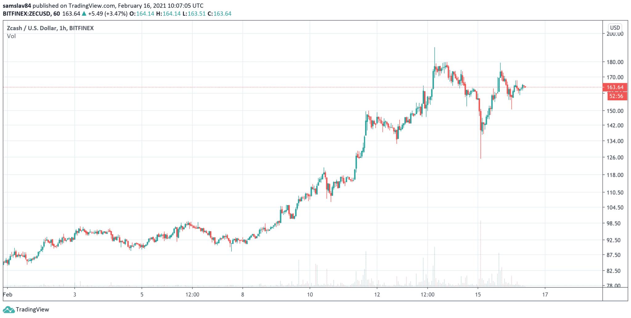 Podobne, ako ďalšie anonymné coiny, aj Zcash je hlboko pod svojím historickým maximom. Aktuálnych 162 dolárov je takmer nič oproti 800 dolárom z januára 2018.