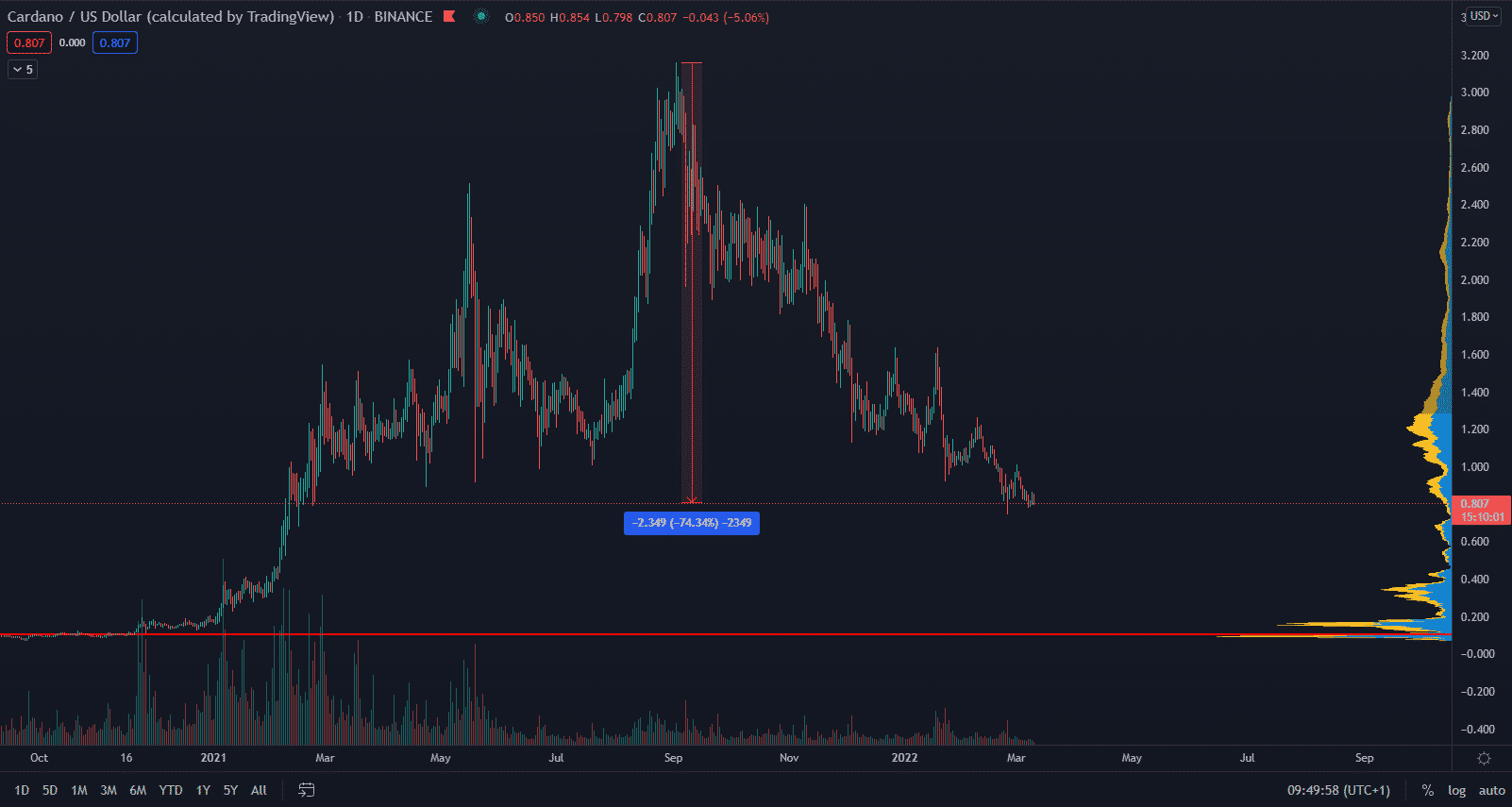 Cardano je rýchlo rastúcou blockchainovou sieťou a stalo sa jedným z najviac cenených digitálnych aktív na trhu. To je dôvod, prečo sa oplatí kúpiť. Okrem toho má Cardano silnú komunitu. Cena Cardana zaznamenala jeden z najväčších poklesov od ATH spomedzi highcapov. Napriek tomu aktivita na sieti prudko rastie a investori akumulujú tokeny ADA.