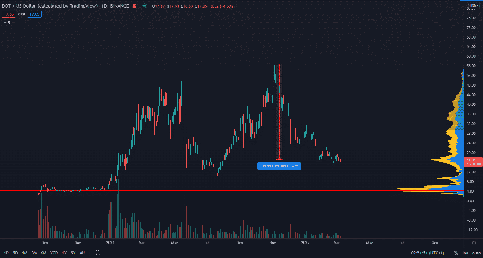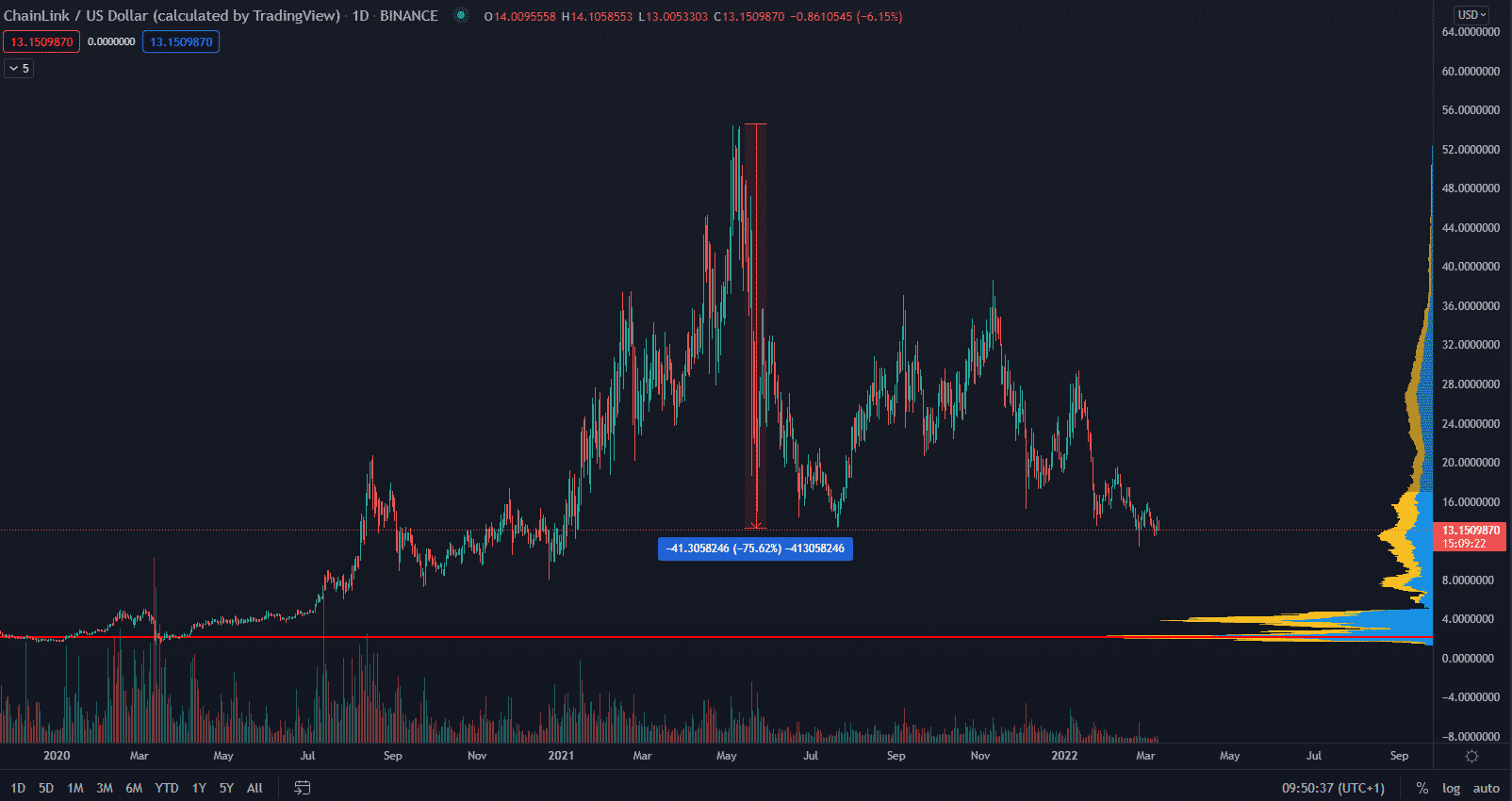 Chainlink môže narušiť tradičné financie. Spoluzakladateľ Chainlinku, Sergey Nazarov, verí, že DeFi ako ekosystém by mohol mať do konca roku 2022 hodnotu 1 bilión dolárov. Samotná cena mince LINK dlhodobo klesá a nachádza sa v zóne, kde by čoskoro mohlo dôjsť k akumulácii a obratu trendu v tomto roku.