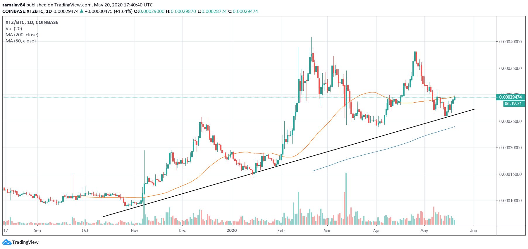 Ak hľadáte altcoiny do HODL portfólia, rozhodne by medzi nimi nemal chýbať Tezos. Ide o jednu z mála kryptomien, ktorá je v UPtrende voči Bitcoinu, aj voči doláru. S kapitalizáciu dosahujúcou 2 miliardy dolárov je na 10 mieste v rebríčku coinmarketcap.