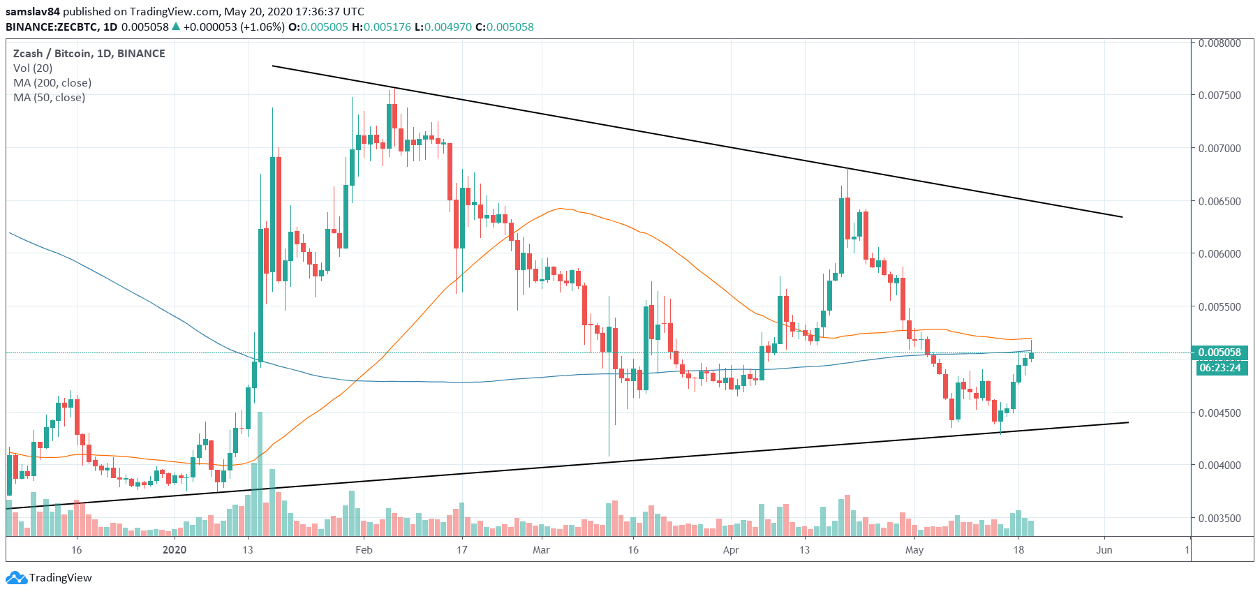 Zcash od BTC halvingu oproti doláru narástol o 19% a rozhodne ide o altcoin, ktorý stojí za zváženie. Podobne ako Ethereum, aj Zash je v tomto roku voči Bitcoin v UPtrende.