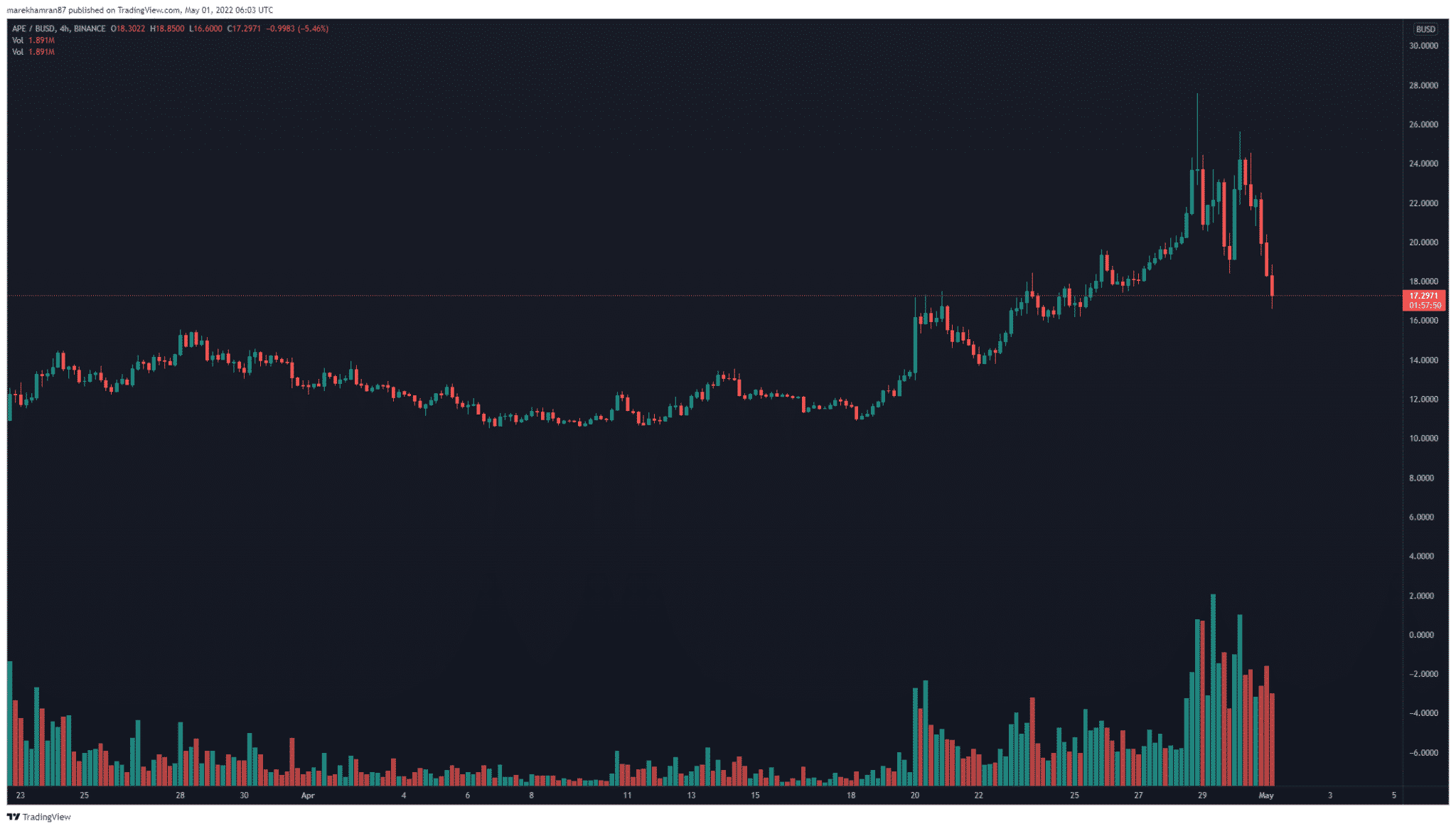 V čase písania tohto článku sa ApeCoin obchodoval na úrovni 17,53 USD. 24-hodinový objem obchodov dosiahol až približne 5 miliárd USD.