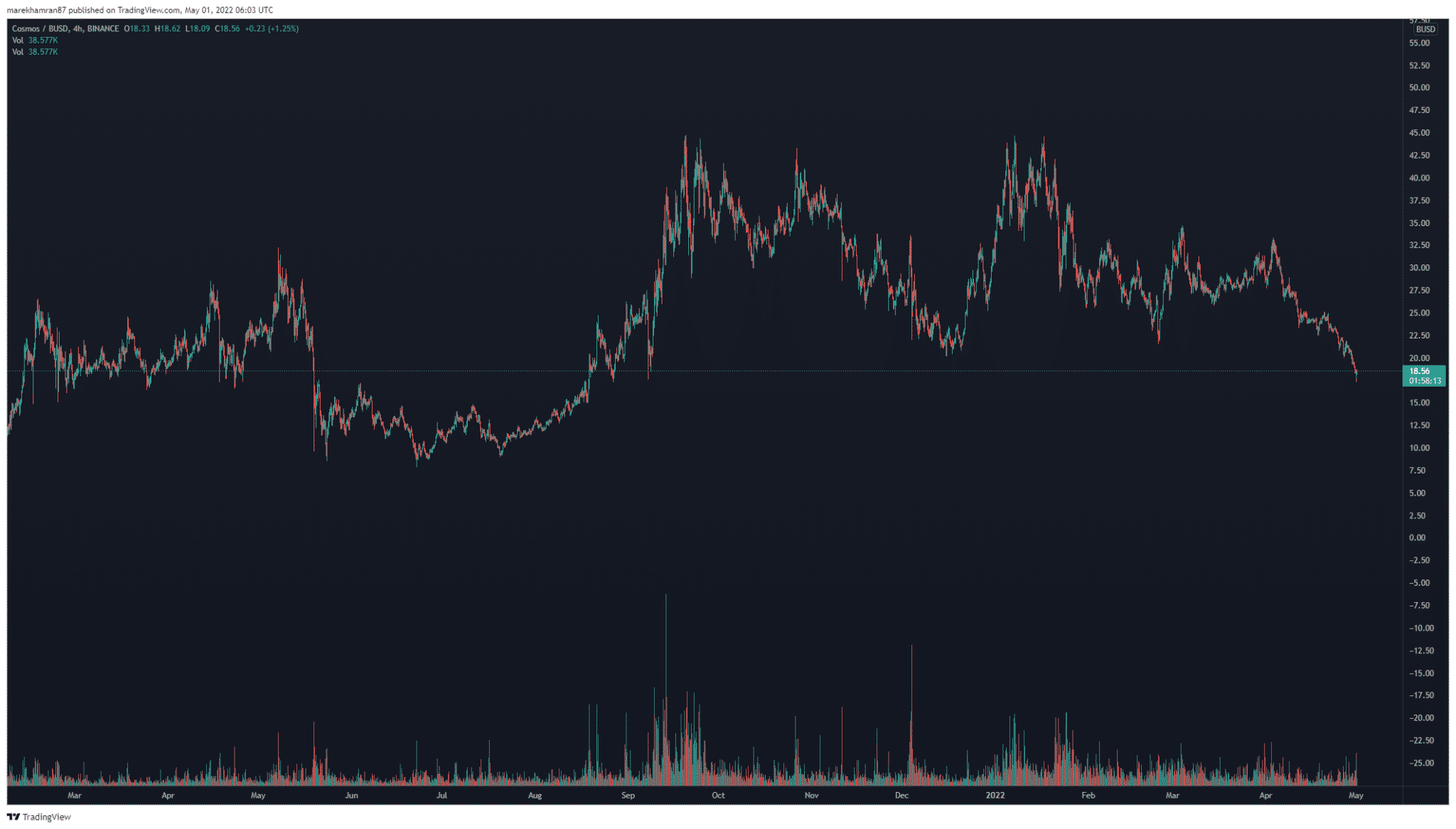 V čase písania tohto článku sa cena tokenu ATOM pohybovala na úrovni 18,53 USD.