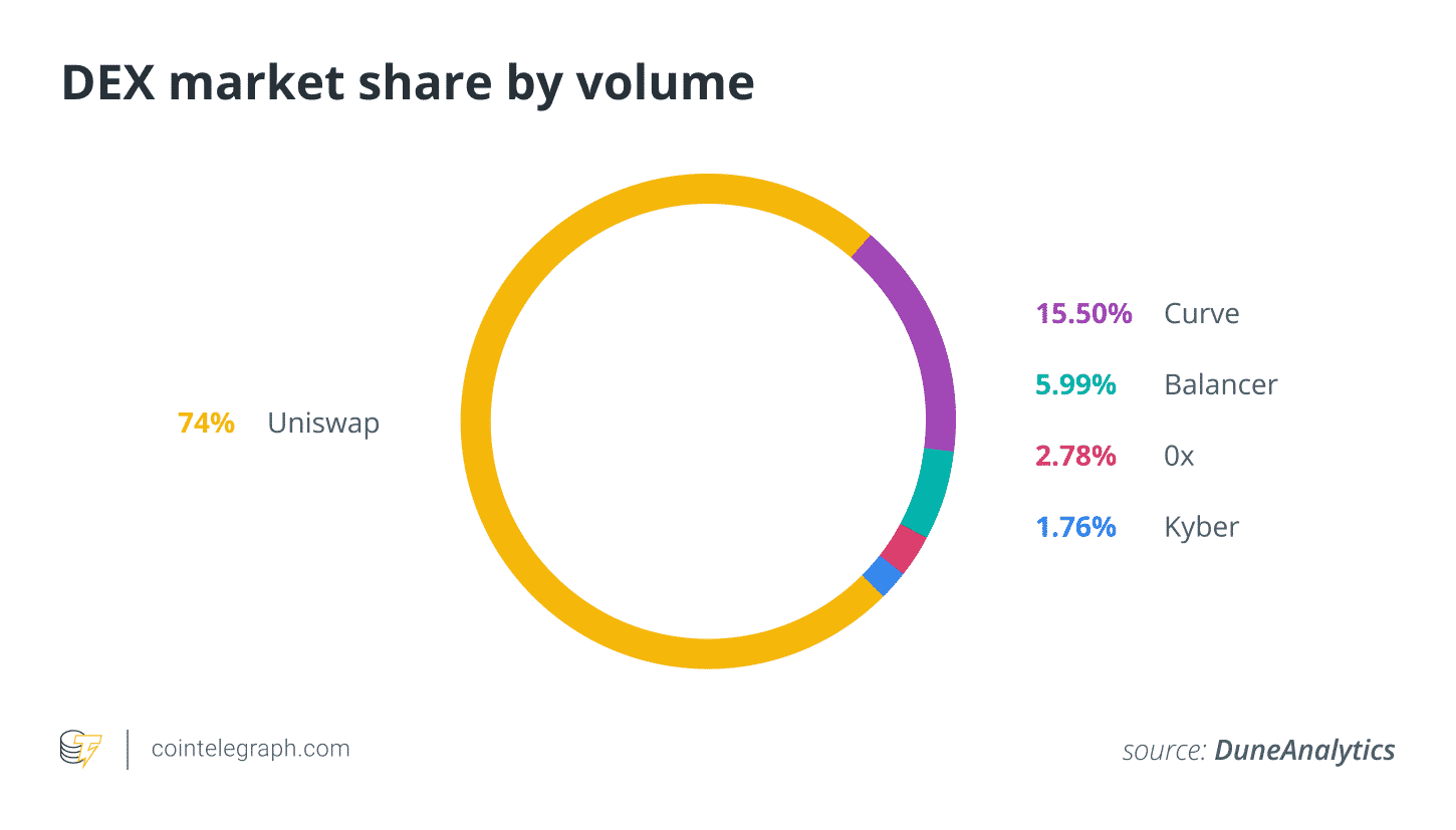 Približne 72% všetkých obchodov na decentralizovaných zmenárňach prechádza cez Uniswap. Ide o prvý DEX druhej generácie, ktorý spopularizoval funding poolu. Po Uniswape sa objavilo mnoho ďalších podobných zmenární, ktoré taktiež používajú tento mechanizmus.