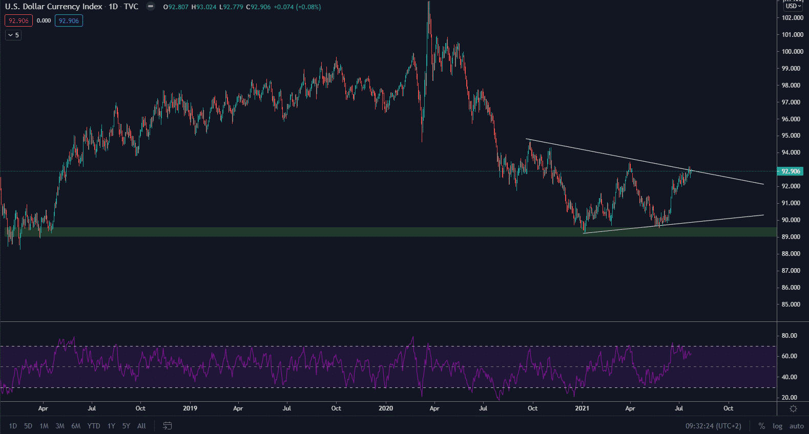 Podľa údajov spoločnosti Delphi Digital je jedným z najväčších faktorov, ktoré zaťažujú rizikové aktíva na celom svete, posilňujúci sa americký dolár. Ten sa podľa všetkého pokúša o zvrátenie trendu po poklese pod hodnotu 90 z konca mája.