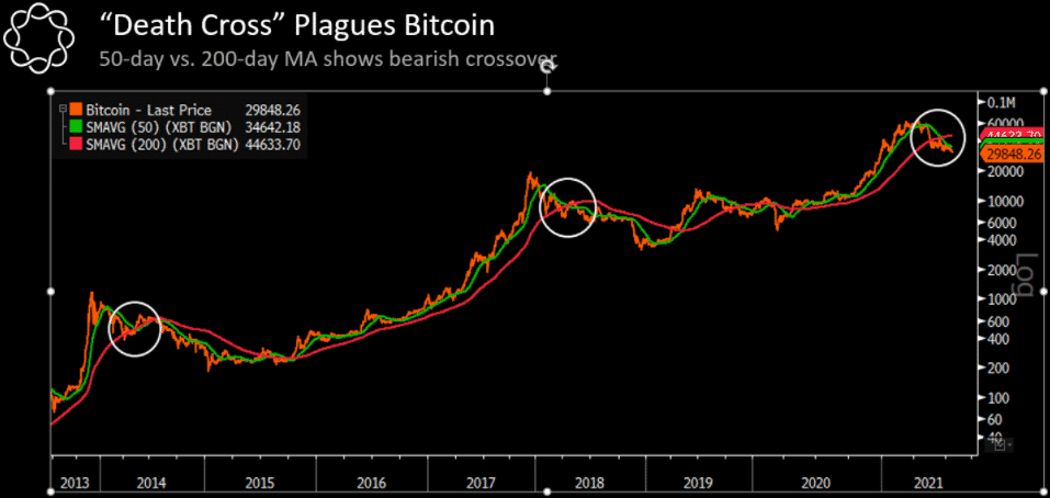Medvedie prekríženie MA50 a MA200. Zdroj: Delphi Digital