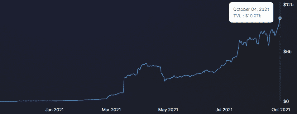 Tretím dôvodom vzostupných cenových pohybov LUNA je rastúci ekosystém protokolov decentralizovaného financovania (DeFi) siete. Tie pomohli posunúť celkovú uzamknutú hodnotu v protokole na nové historické maximum.