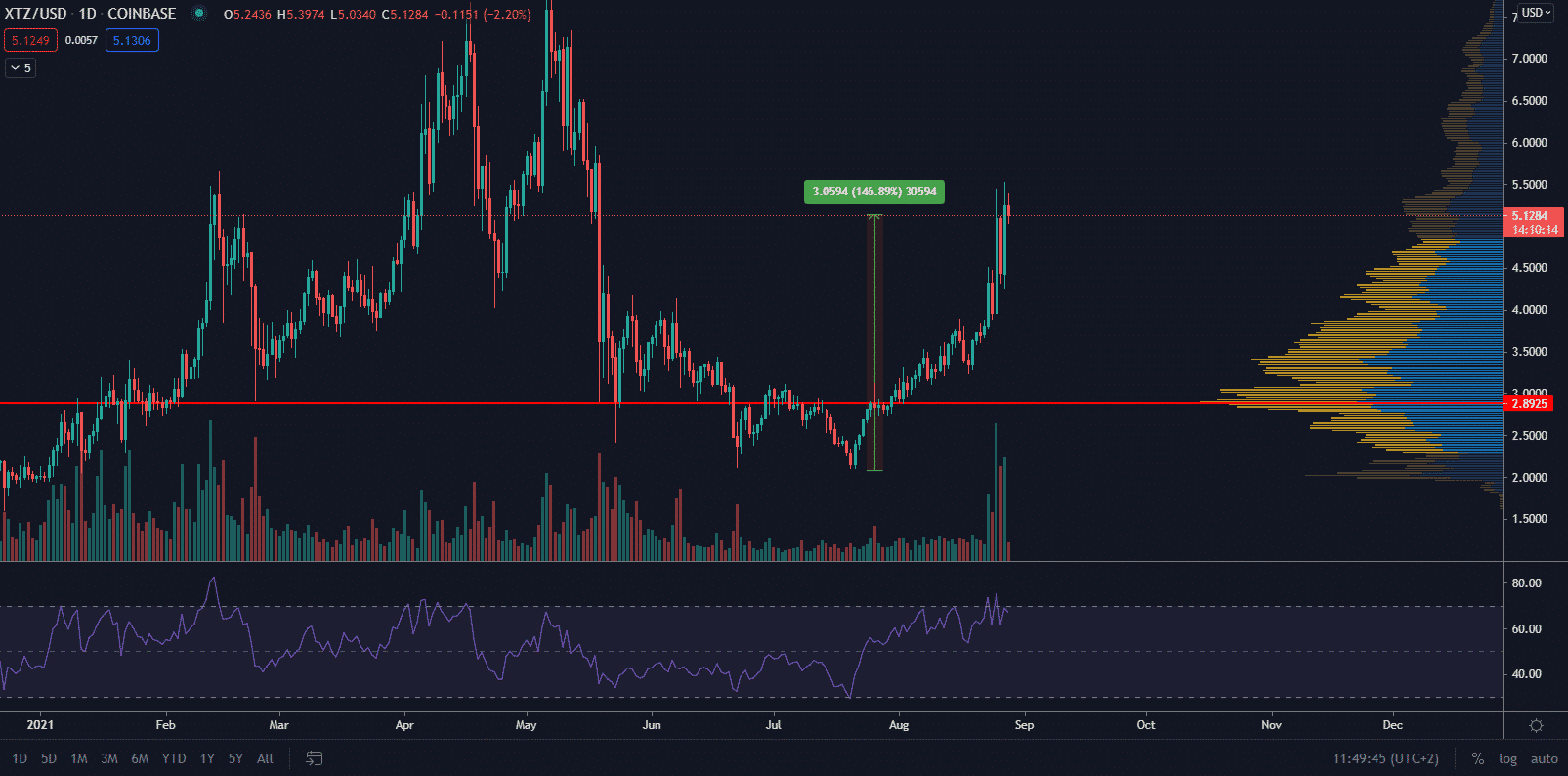 V čase písania článku údaje z TZStats naznačujú, že 77,65 % z celkovej ponuky XTZ sa aktívne vkladá do siete. To výrazne obmedzuje počet tokenov dostupných na trhu a je potenciálnym zdrojom pozitívneho cenového tlaku.