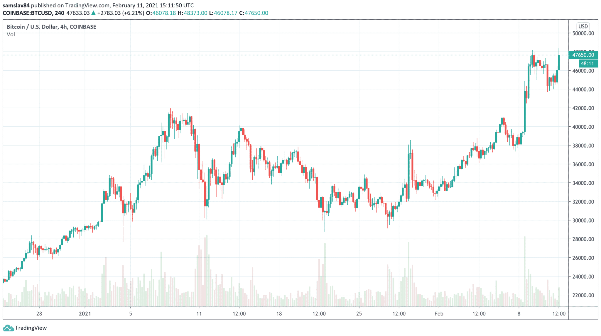 Cena Bitcoinu za posledný týždeň stúpla o neuveriteľných 27%. Kapitalizácia najväčšej kryptomeny sa zvýšila o viac než 200 miliárd dolárov a Bitcoin sa v čase písania tohto článku obchoduje za historicky najvyššiu cenu. Za úspech z posledných dní môžeme jednoznačne ďakovať vizionárovi Elonovi Muskovi. Jeho automobilka Tesla totiž v pondelok ohlásila nákup za 1,5 miliardy dolárov.