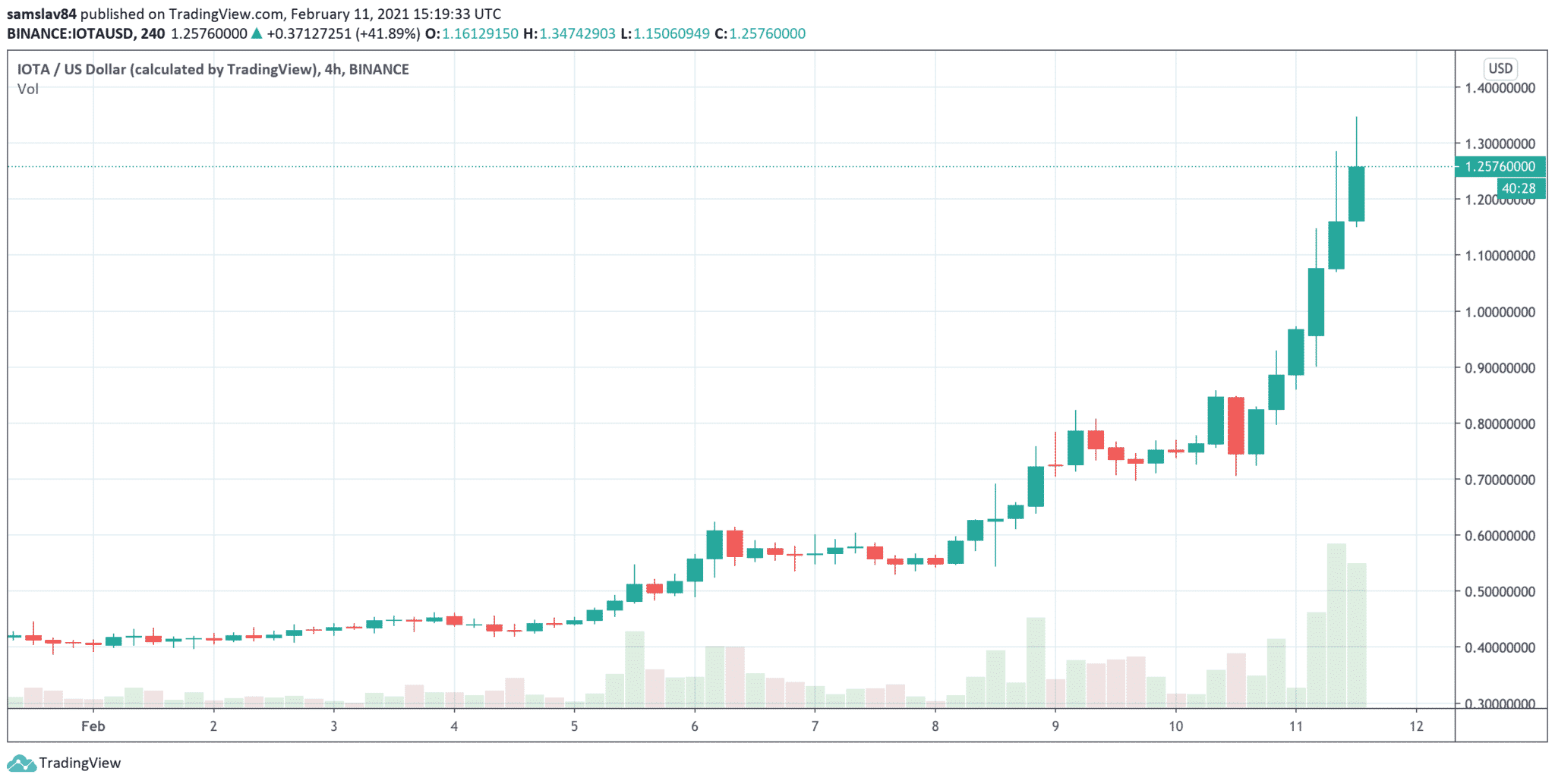 Podobne ako BNB, aj IOTA prišla na krypto párty dosť neskoro. Ešte na začiatku februára stála iba 40 centov, čo je menej, než cena po vstupe na burzy v roku 2017. Aktuálne sa už IOTA obchoduje za 1,25 $ a za posledný týždeń má za sebou rast o 190%. Je tak najziskovejší z troch altcoinov, ktoré spomíname v tomto článku.