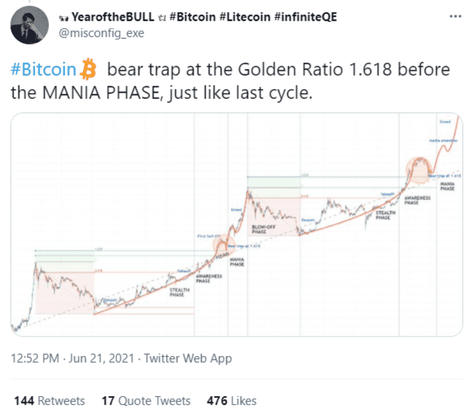 Ako je vidno na tweete vyššie, prepad Bitcoinu pod 29 000 dolárov a následné zotavenie nad 32 000 dolárov vo fáze C považuje mnoho obchodníkov za splnené. To by znamenalo, že súčasná korekcia dosiahla dno alebo sa nachádza blízko neho. Ak sa ukáže, že je to pravda a BTC by vstúpilo do fázy D, tak naozaj by sa potvrdilo, že súčasné ceny sú ideálne na nákup.