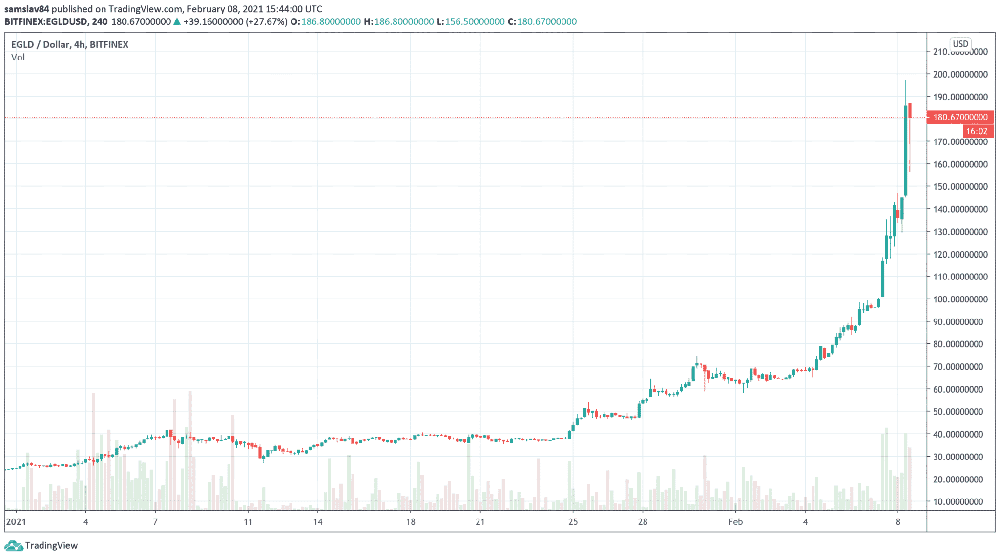 Ak by ste EGLD nakúpili v čase spustenia jeho mainnetu, platili by ste necelých 20 dolárov. Dnes dosiahol historické cenové maximum 198 $. Aktuálne je to 180 $. Sme zvedaví, ako dlho ešte bude pokračovať v parabolickom raste.