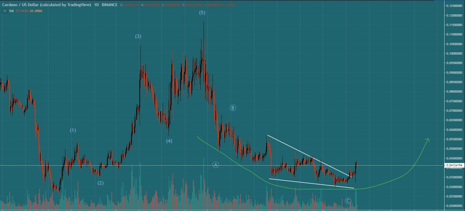 Priznám sa, že oveľa viac verím momentálne altom voči USD. Predsa len, načo to riskovať voči BTC. Halving sa blíži a BTC vyzerá byť bullish. Aby mali malé altcoiny šancu, tak by museli rásť viac ako BTC samotný, a to je celkom risk. Na druhej strane, ak bude rásť BTC, tak veľké alty sa voči USD s ním zvezú. Navyše, pri TRX a ADA sa mi páči ich centová hodnota. Sú to coiny, ktoré boli už na radikálne vyšších cenách. Rovnako sú to coiny, ktoré sa pekne zaguľacujú. ADA „breakla” falling wedge a vydala sa znova nahor. Je možné, že začína nový cyklus.