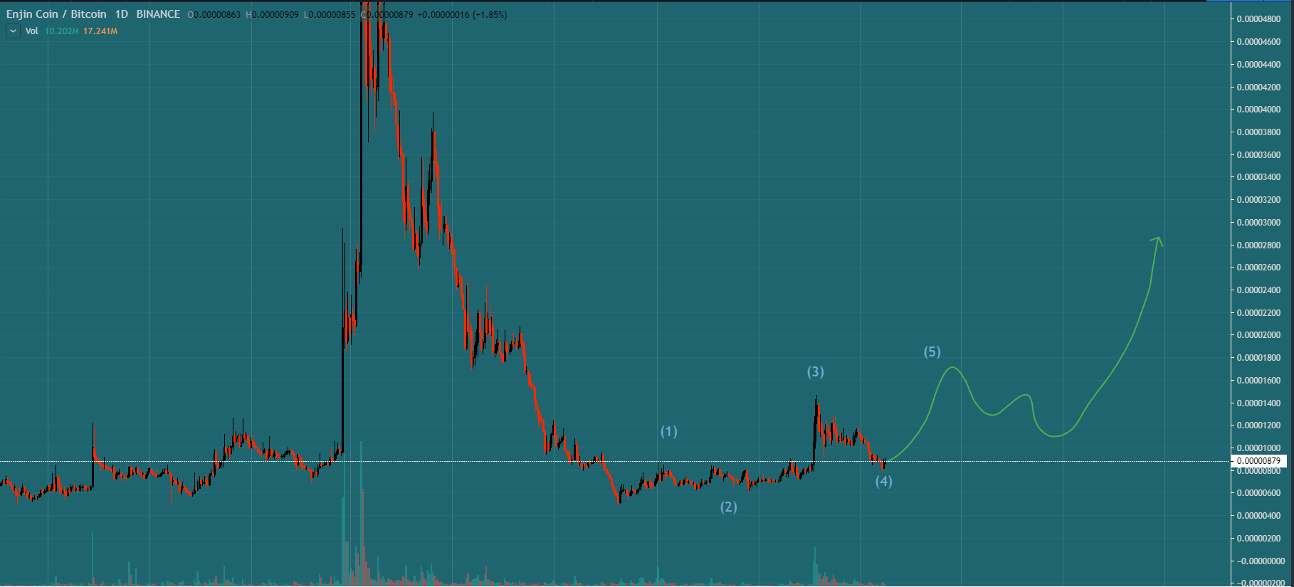 Enjin je pre mňa jeden z coinov, ktoré pozorne sledujem. Pri týchto menších altoch je to naozaj aj trochu lotéria. Videli sme už množstvo prípadov, kedy mal daný altcoin extrémny downtrend, neskôr konsolidáciu a potom znova downtrend. Myslím si, že ENJ nám už počas posledného obdobia ukázal svoju silu. Bohužiaľ, rovnako trpí halvingom a posledný rast bol celkom solídne stiahnutý. Keď sa však na graf pozrieme z vyššej perspektívy, tak potenciál je obrovský.