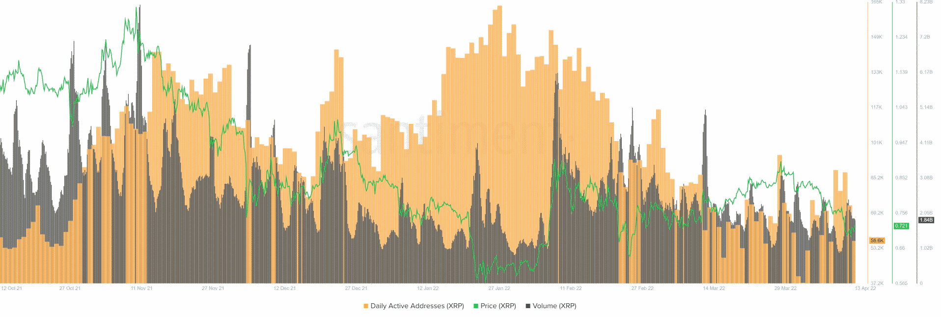 Nakoniec tu máme denné aktívne adresy a objem na reťazci, ktoré od 8. februára klesajú, čo naznačuje, že došlo k odlivu kapitálu a investorov interagujúcich s blockchainom Ripple.