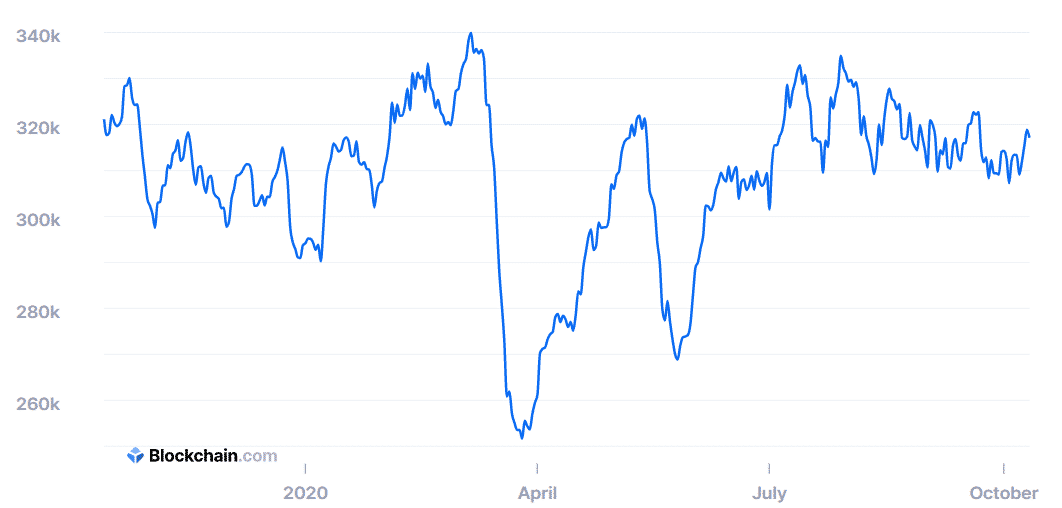 Denný počet transakcií sa tiež drží vysoko a v priemere dosahuje 320 000.