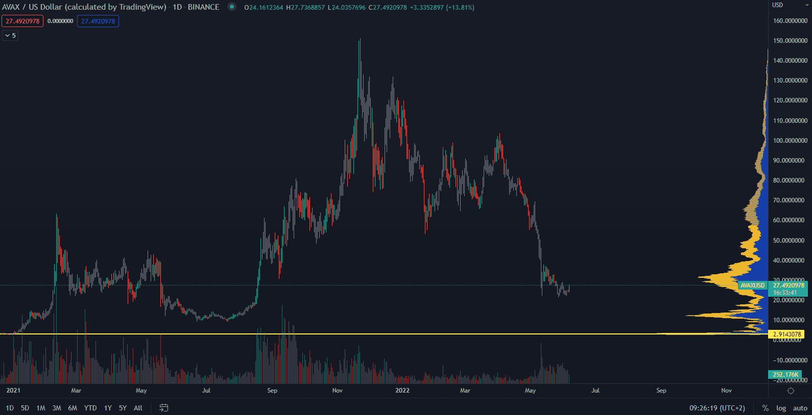 Cena AVAX počas minulého krachu kryptomien prudko klesla a od začiatku roka stratila viac ako 80 %. Jeho cena však vytvorila support okolo 21 $ a v súčasnosti sa obchoduje za 27 $. Z tejto ceny a s náležitým odrazom môže AVAX dosiahnuť aspoň cenu 40 $.