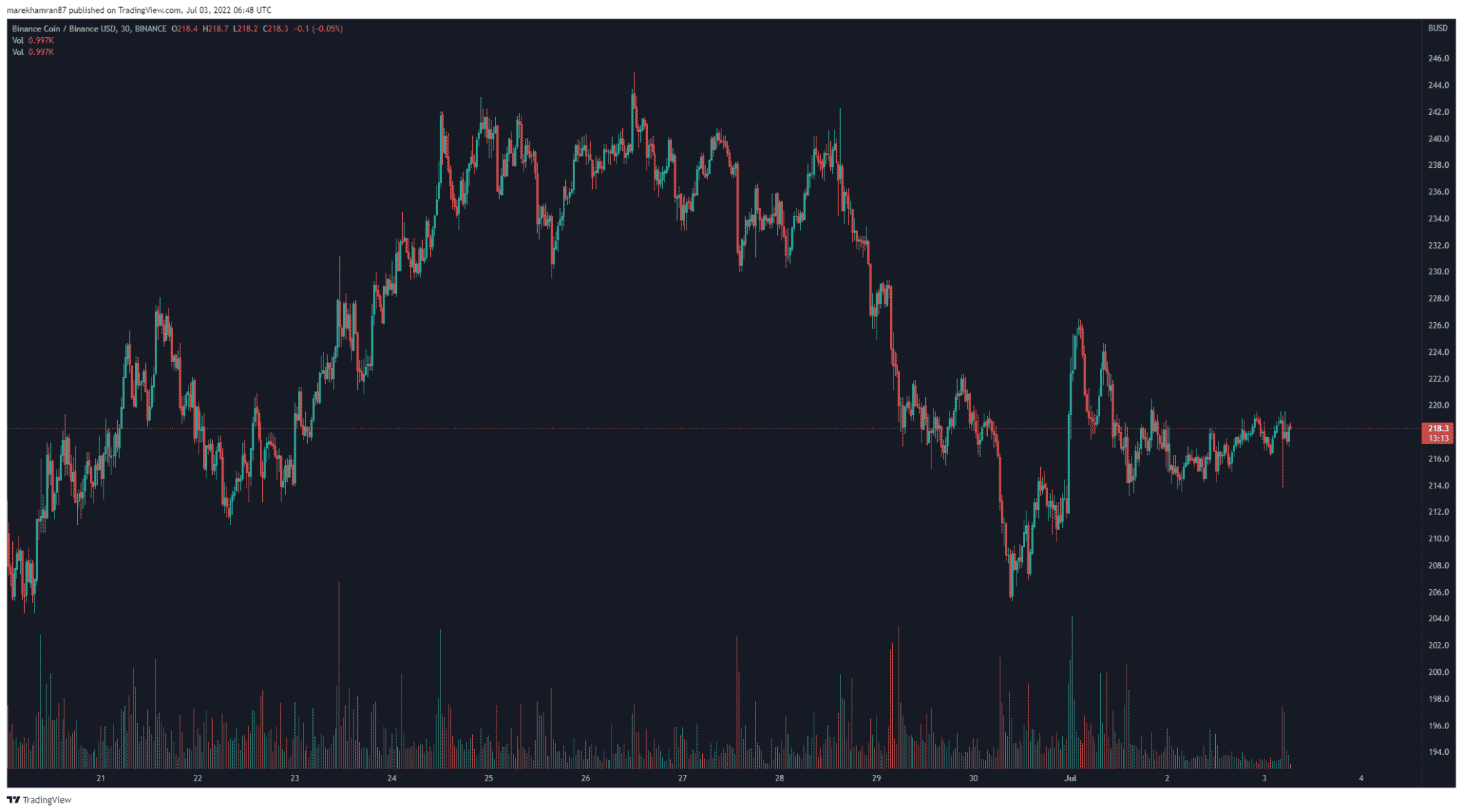 Obrovský a stále nenaplnený potenciál môže mať aj ďalší významný projekt od burzy Binance – natívny token BNB s trhovou kapitalizáciou na úrovni 35 miliárd USD. Binance je najväčšou kryptomenovou burzou na svete, ktorá od svojho založenia v roku 2007 neustále rozširuje svoje pôsobenie a služby v sektore kryptomien. Cena BNB bola pri založení burzy na úrovni 0,10 USD. Dnes je to nárast o viac ako 218 000 %, teda 218 USD.