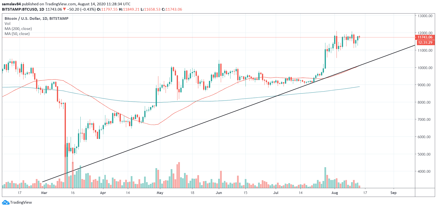 Bitcoin sa v tomto roku z ceny 3700 $ dostal najprv na 5000 $, potom na 7000 $, tretiu zástavku našiel pod 10 000 $ a zdá sa, že tá štvrtá sa nám objavila na spomínaných dvanástich tisícoch. Ak sa história bude opakovať, nemáme sa čoho báť. Bitcoin bude ešte niekoľko týždňov či mesiacov konsolidovať na súčasnej úrovni a niekedy na konci leta ju prerazí.