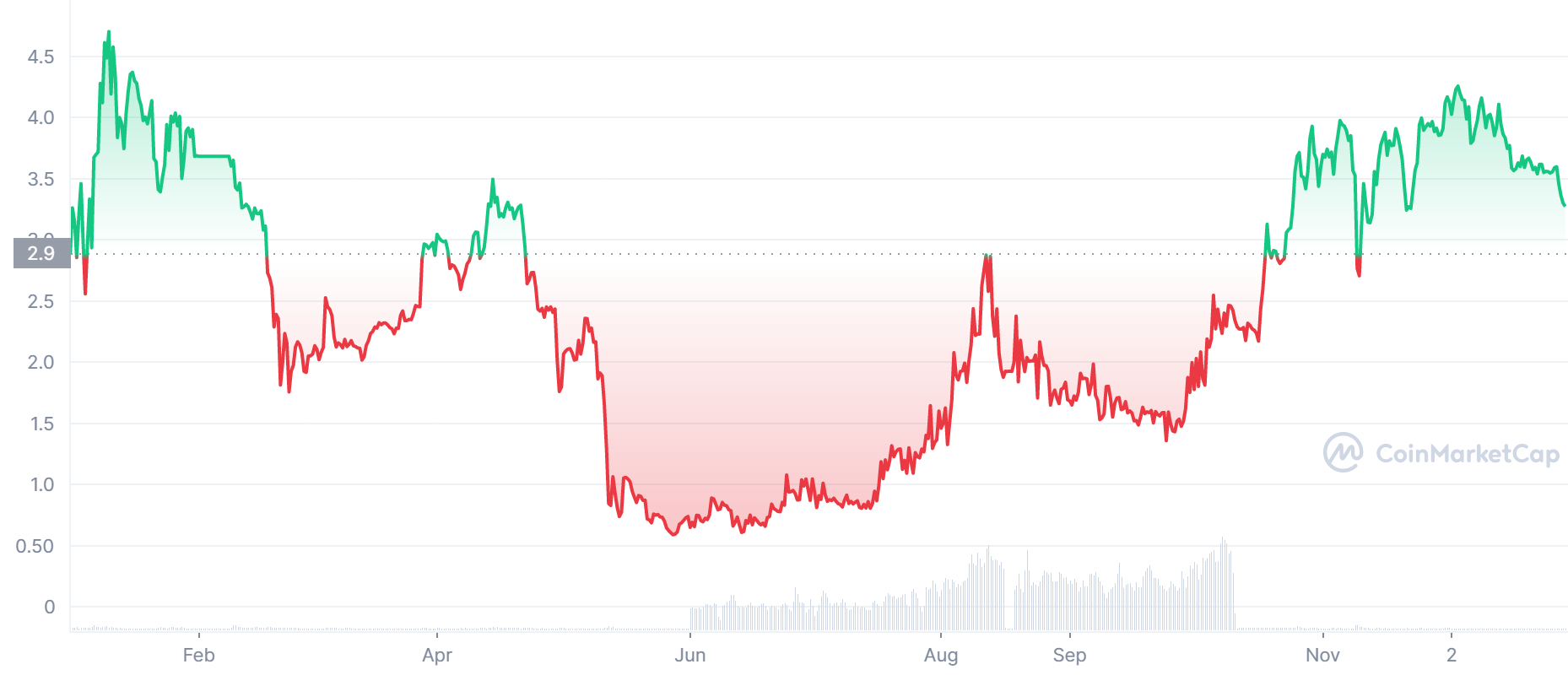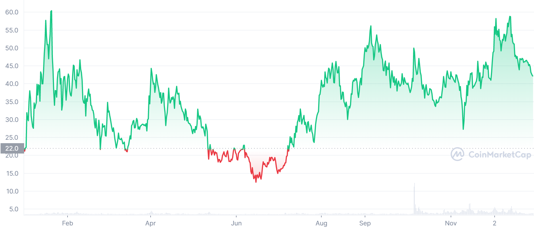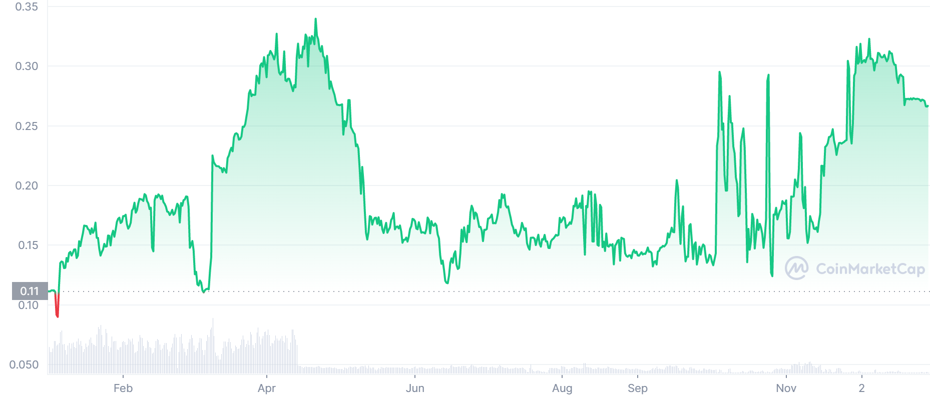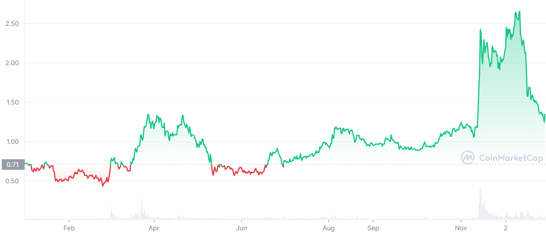 Cena tejto kryptomeny za posledný rok je o približne 100 % vyššie. Dokonca od júna do decembra tohto roka urobila táto kryptomena takmer 400 % rast. Aktuálne sa nachádza v menšej korekcií.