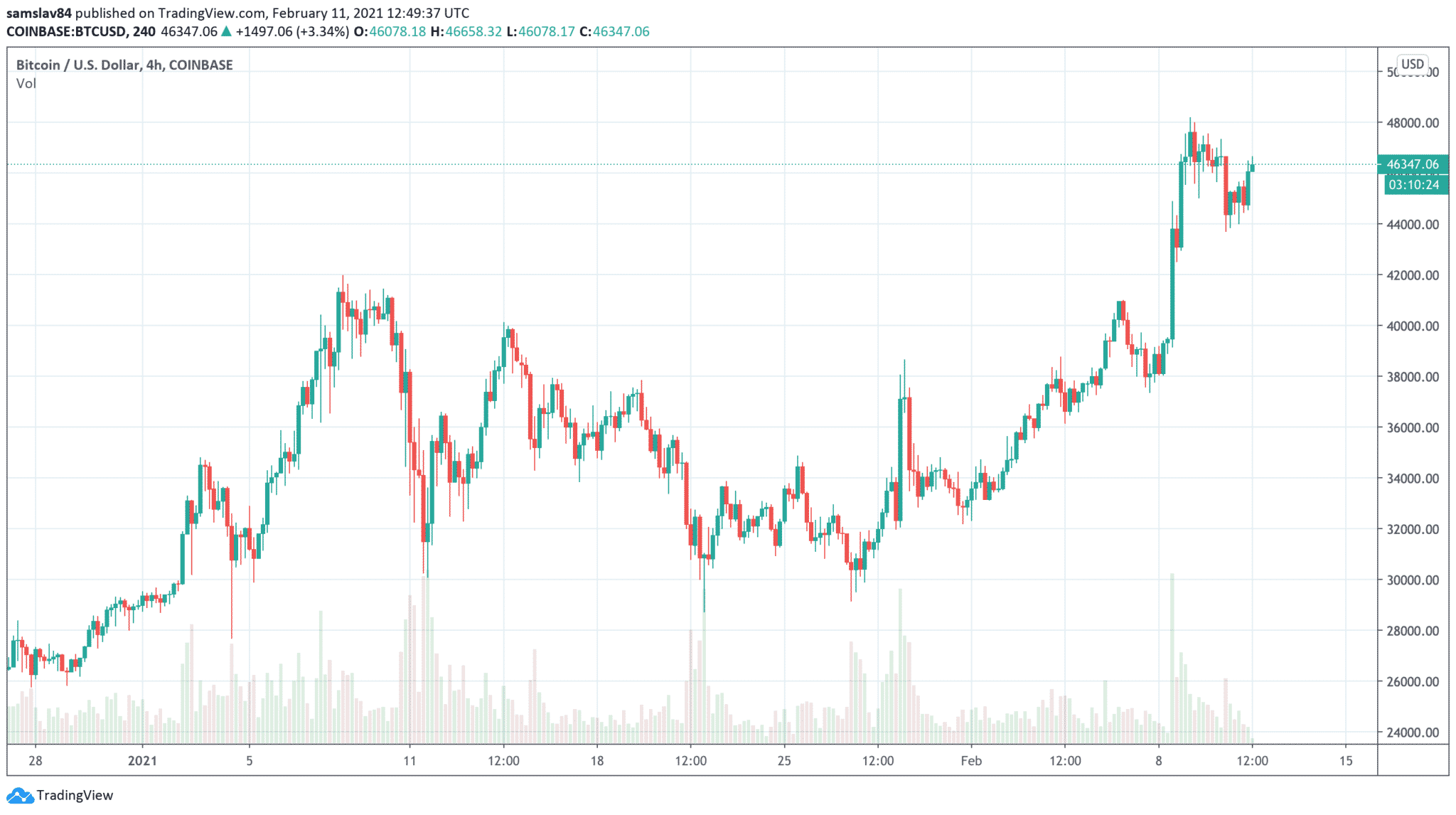 Keď Tesla v pondelok odhalila nákup Bitcoinov za 1,5 miliardy dolárov, na trhu s kryptomenami sa spustil obrovský hype a ceny vystrelili na nové historické maximá. Bitcoin nakoniec prekonal hladinu 48 000 $, no odvtedy jeho cena klesá. Aktuálne sa pohybuje na hladine 46 000 $ a analytici určili kľúčovú hladinu, pod ktorú nesmie klesnúť.