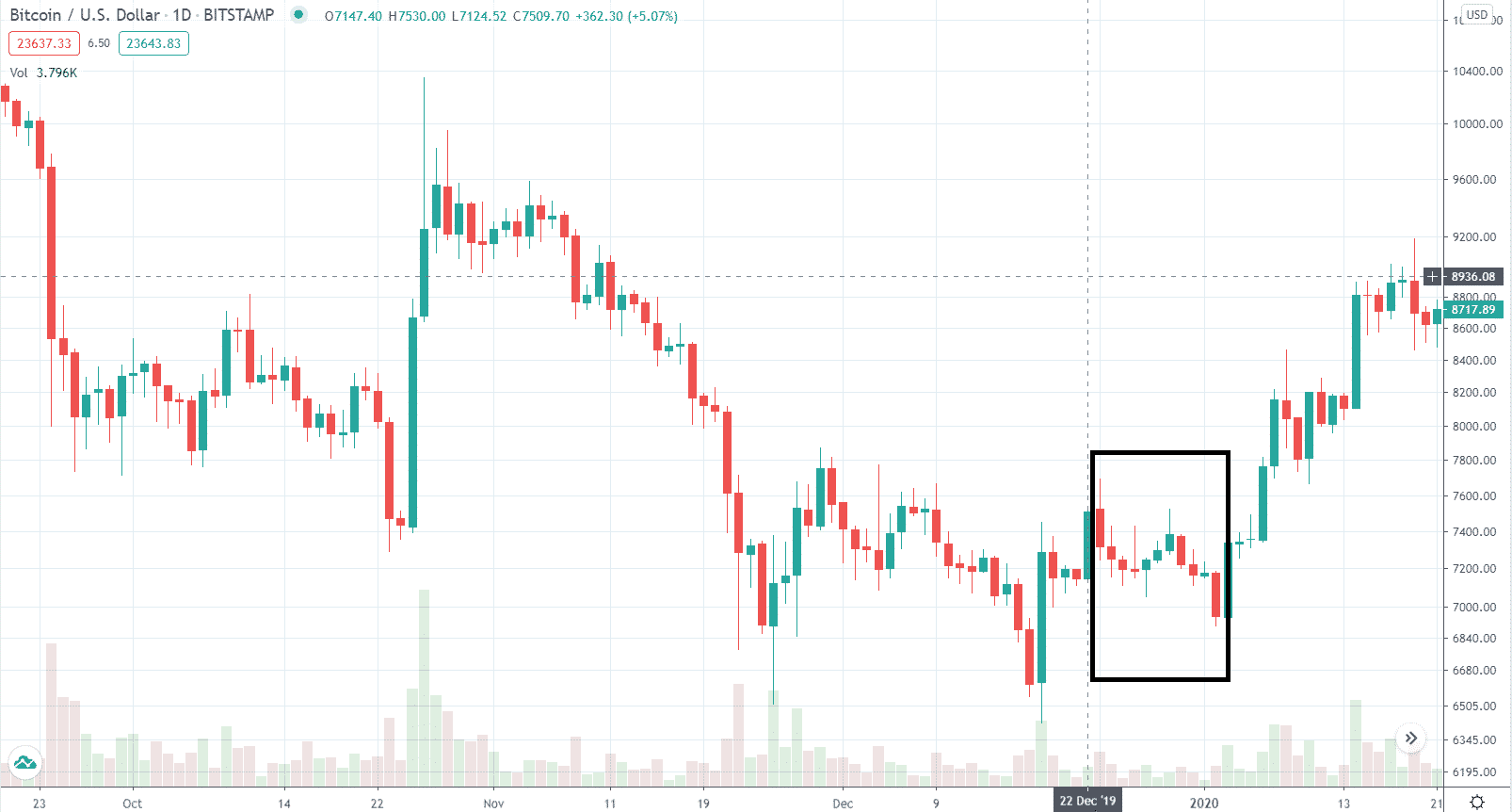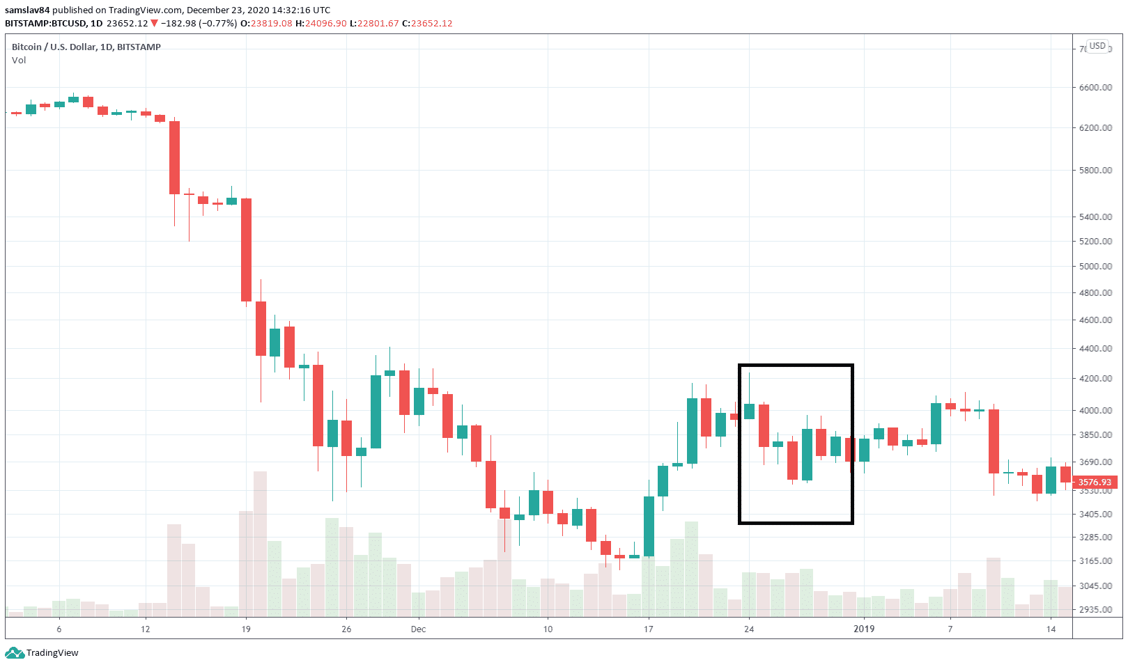 Ani história nenahráva vianočnému rastu. Stačí sa pozrieť na vývoj cien z posledných rokov a môžeme vidieť, že cena Bitcoinu zvykne koncom roka klesať. Miernu korekciu sme zaznamenali hlavne v rokoch 2017-2019.