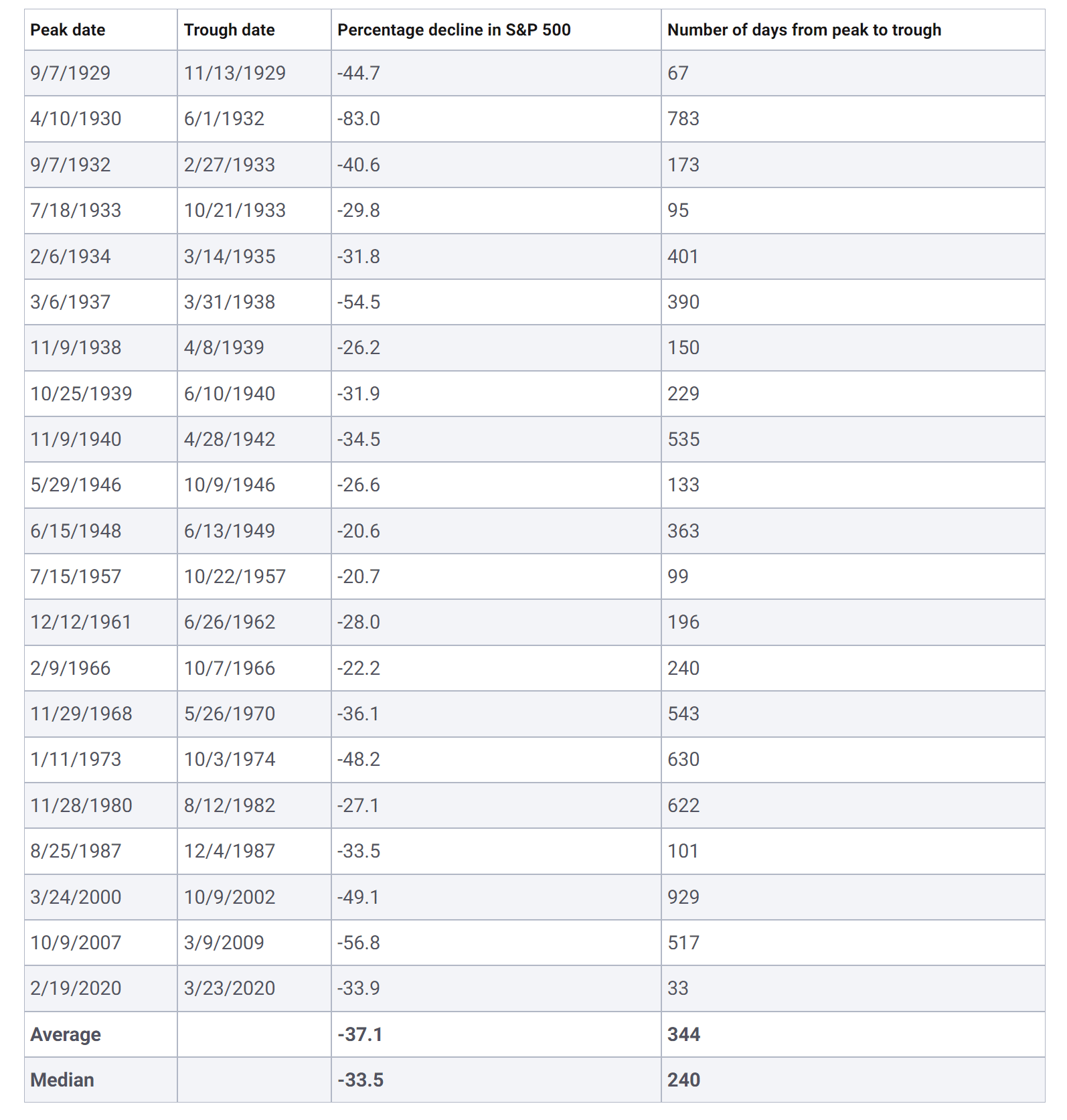 Prehľaď poklesov na S&P500. Zdroj: bankrate.com