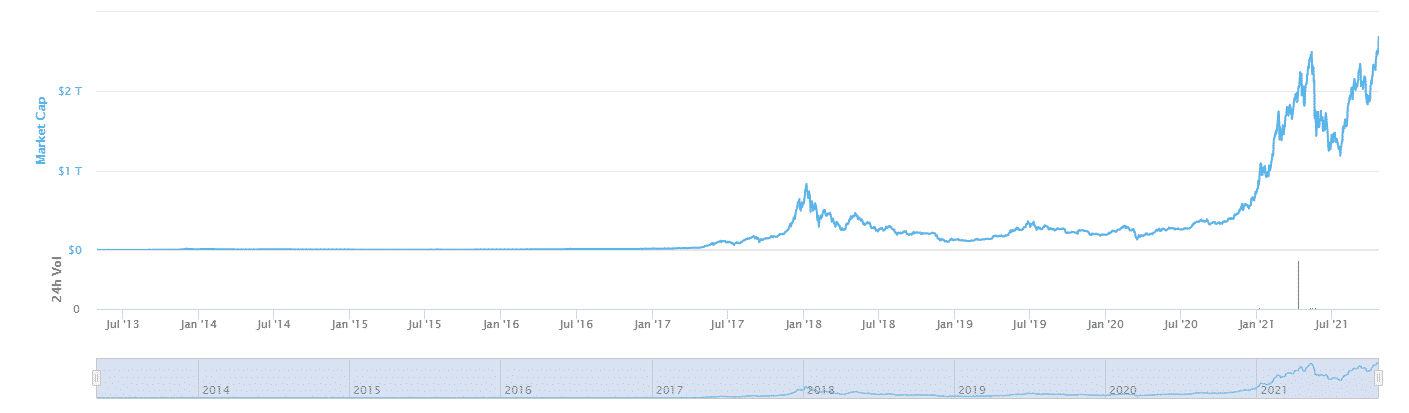 Po prvýkrát v histórií sa celková trhová kapitalizácia vyšplhala na úroveň 2,6 bilióna USD. Za týmto výraznom nárastom je bezpochyby oznámenie SEC o spustení ETF Futures fondov pre Bitcoin, ktorý sa na základe tejto informácie dokázal dostať na nové historické maximum.