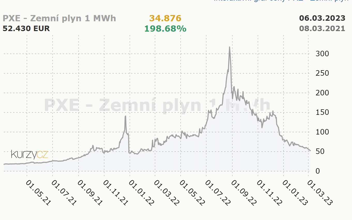 Cena plynu za posledné 3 roky. Zdroj: kurzy.cz