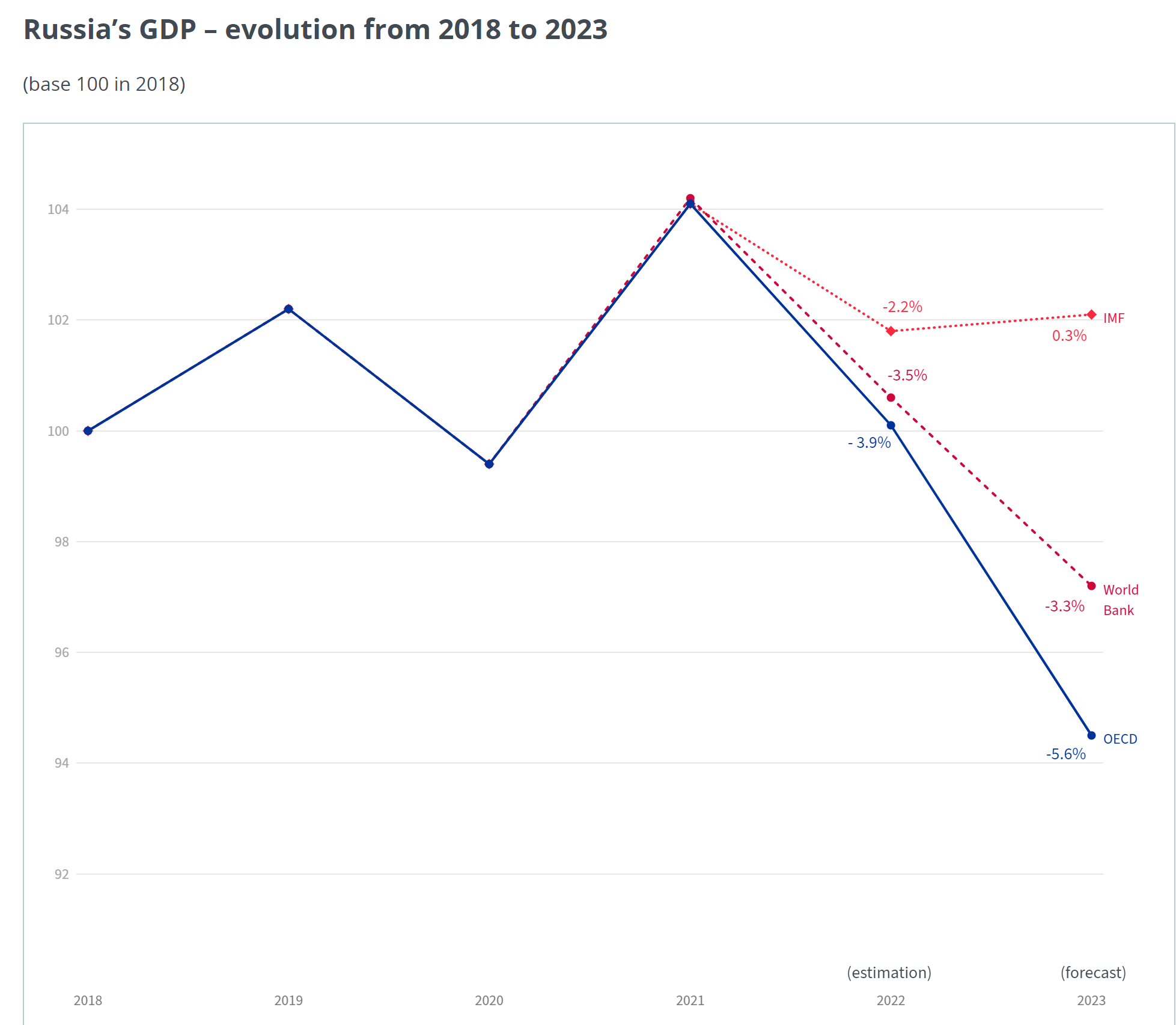 Rusko nemusí mať ani tak problém s HDP, ktorého pokles nie je až tak markantný, ako sa očakávalo ale s dlhodobým financovaním vojny. Sankcie môžu mať neskôr za následok, že Rusko nebude mať dostatok tovarov nie len na výrobu bielej techniky, ale aj súčiastok na výrobu zbrojnej techniky.