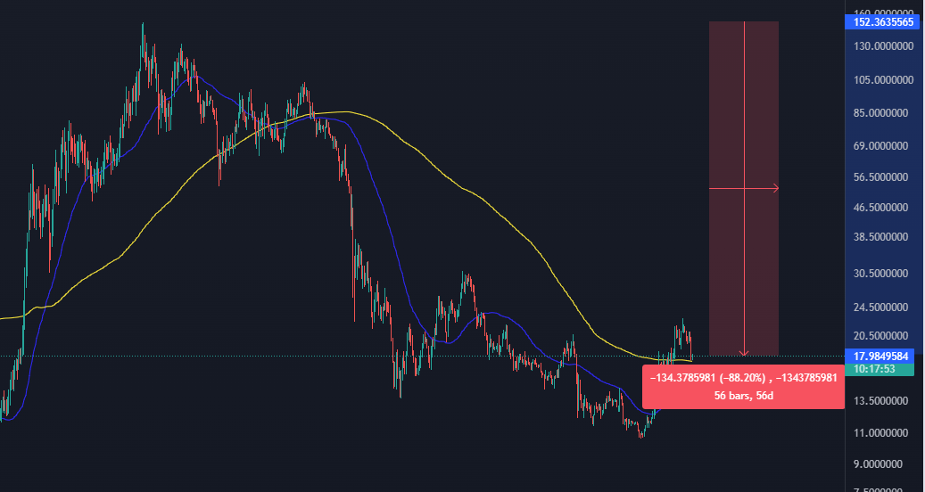 Token AVAX sa v čase písania tohto článku pohyboval na úrovni 18 dolárov. Po dosiahnutí historického maxima na úrovni 152 dolárov stratil do dnešného dňa viac ako 88 % svojej hodnoty.