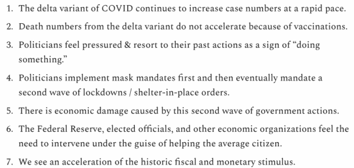 Sedem potenciálnych etáp, ktoré nás čakajú v súvislosti s novým variantom Delty, zahmlieva nádej na obnovu. Zdroj: Anthony Pompliano Newsletter