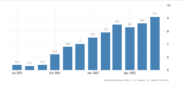 Inflácia v mesiaci jún dosiahla nové maximum – 9,1 %. Informovalo o tom dnes Americké ministerstvo práce a denník Wall Street Journal.