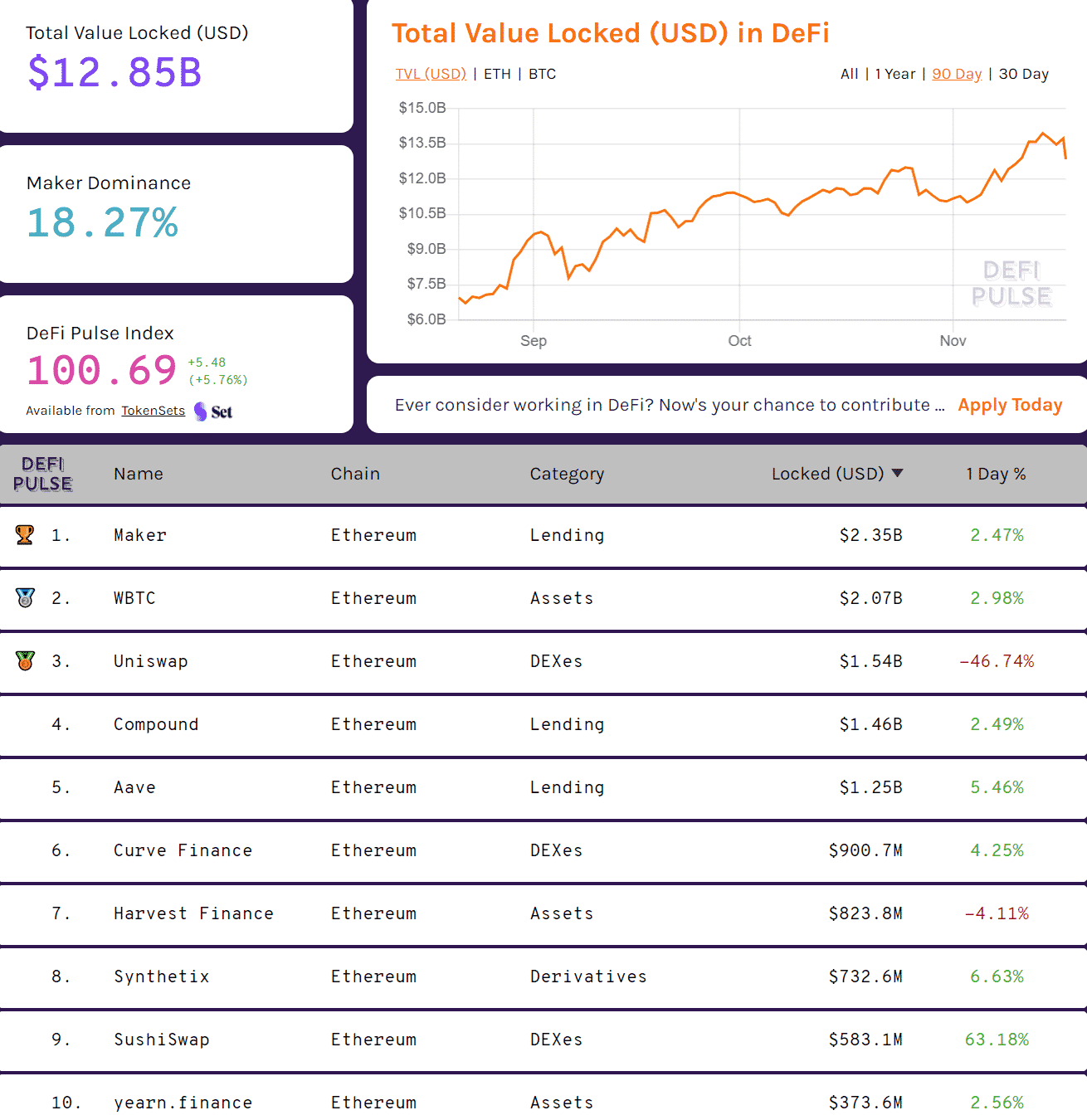 Tak ako sme očakávali, peniaze po rozdistribuovaní všetkých UNI tokenov z burzy rýchlo utekajú. Hodnota kryptomien uzamknutých na Uniswape dnes klesla na polovicu. Padla tak z 3 miliárd na 1,5 miliardy, čím burza prišla o prvé miesto na stránke defipulse.