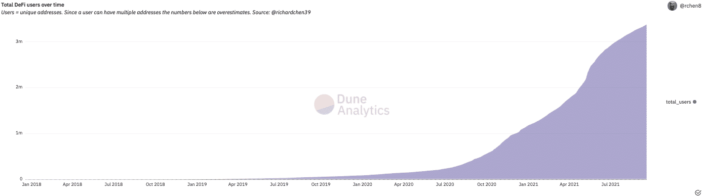 Je práve teraz vhodná doba investovať do uvedených DeFi projektov? Ak sa pozrieme na prílev nových adries do sektoru DeFi, tak vidíme konzistentnosť. V čase písania tohto článku bolo na trhu približne 3,38 milióna adries DeFi.
