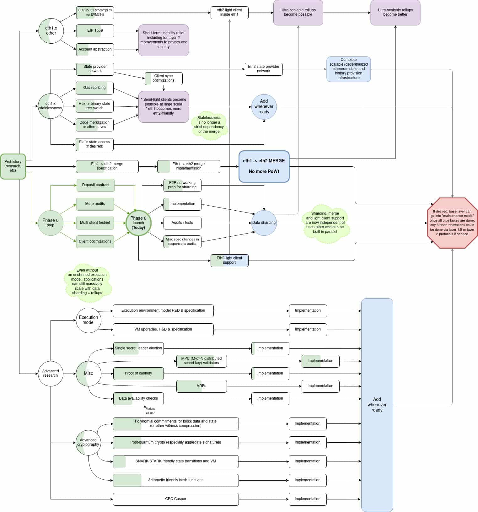 Kedy? Vitalik Buterin dnes na svojom Twitteri publikoval aktualizovanú roadmapu, ktorej sa drží Ethereum Foundation. Ukazuje, na ktorých funkciách momentálne developeri pracujú a obsahuje aj odhadovaný progres vývoja platformy (vrátane vylepšení súčasného 1.0 blockchainu).