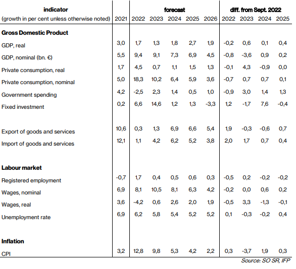 Slovensko: predpoveď ekonomiky. Zdroj: MFSR