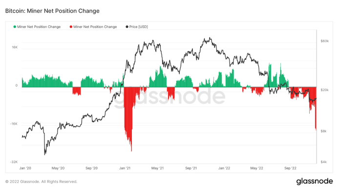 Podľa Hayesa sa nedá úplne presne definovať, či sa veľkí hráči zbavovali svojich kryptomien počas najväčších poklesov, no s istotou sa dá určiť, že mali v úmysle čo najlepšie zlikvidovať svoje zásoby. Rovnaký scenár sa deje aj v prípade ťažiarov, ktorí prežívajú jedno z najhorších období v histórii Bitcoinu.