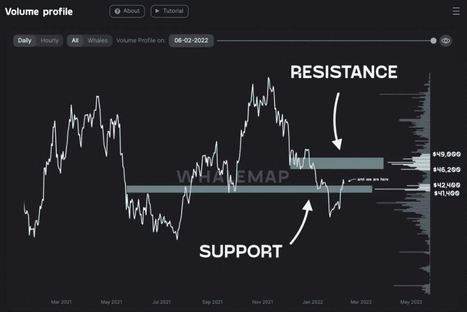 Medzitým WhaleMap predpokladal 46 200 – 49 000 USD ako súčasný rozsah odporu Bitcoinu. Uviedol vyššiu obchodnú aktivitu v rámci cenovej oblasti v minulosti.