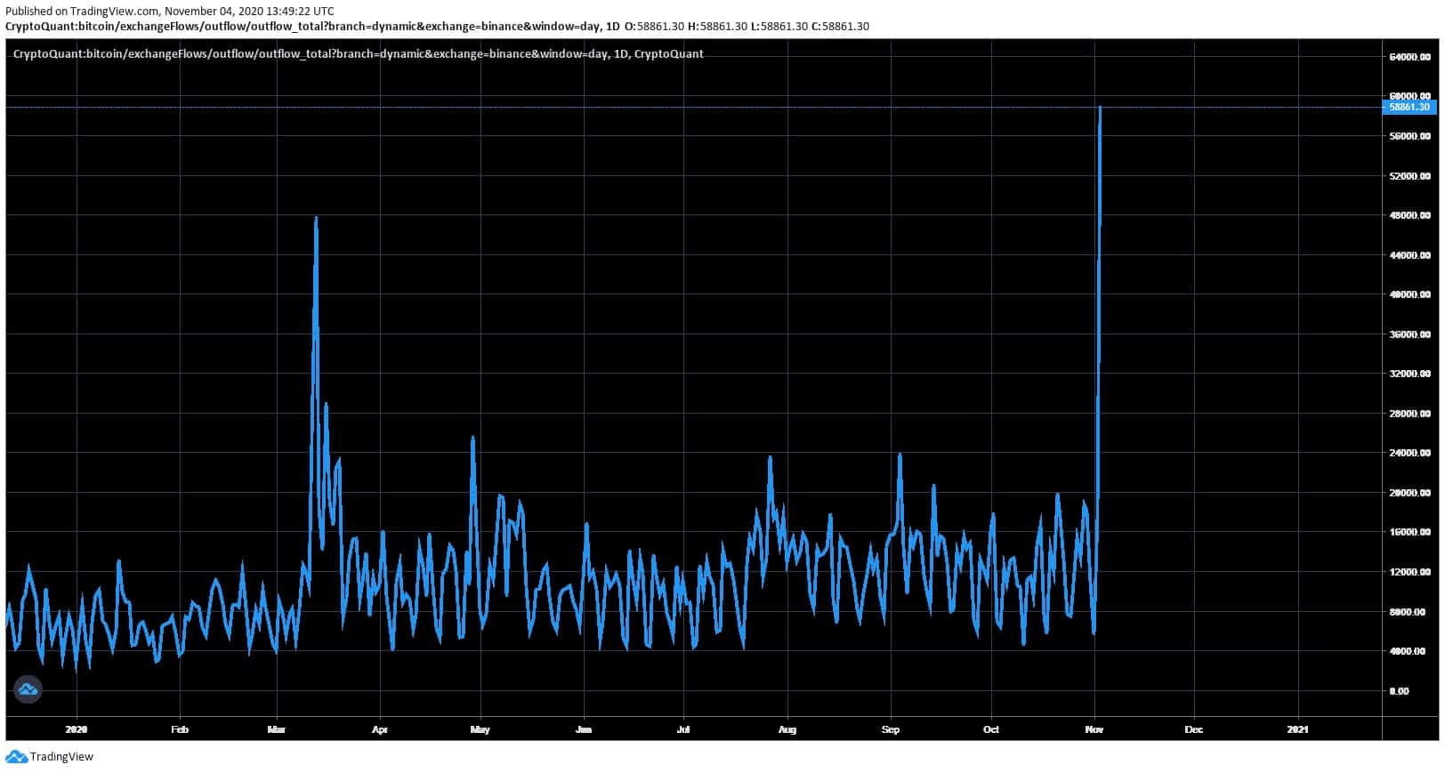 Je evidentné, že sa deje niečo veľké. Ako sme spomínali vyššie, mince vo veľkom opúšťajú aj Binance. Pozrite sa na tento graf, v ktorom sú zakreslené odlivy coinov z peňaženky tejto burzy.