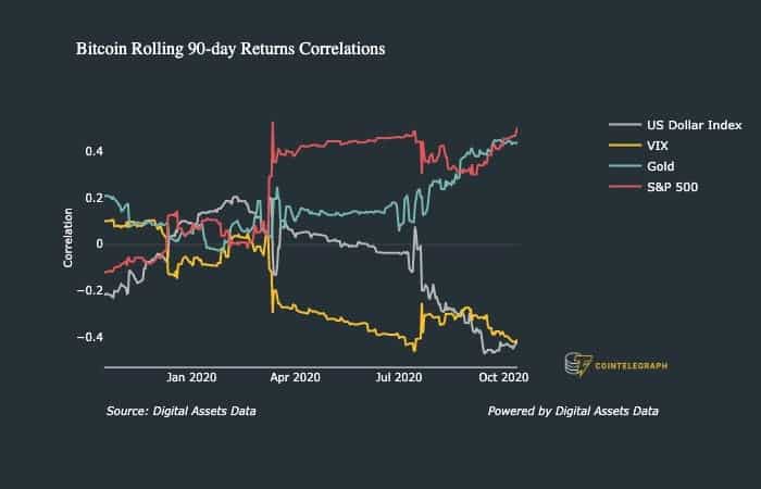 Za posledný mesiac sa bitcoiny odklonili od sily amerického dolára aj od volatility VIX, čo prinieslo nové príležitosti pre investorov túžiacich po diverzifikácii. Sú to práve akcie v podobe S&P 500 a zlata, ktoré teraz zobrazujú rastúce korelačné vzorce s BTC.