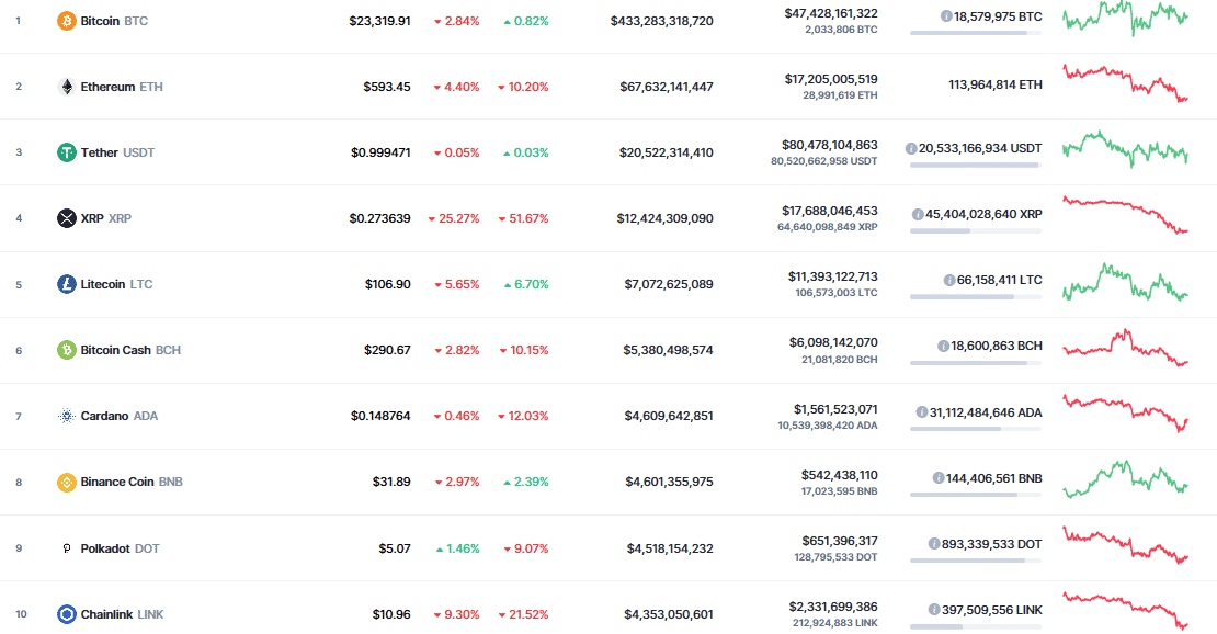 Trh s kryptomenami počas vianočného dňa už tradične klesá. Dnes ráno to vyzeralo dosť desivo. Niektorí altcoiny boli v dvojcifernej strate, zatiaľ čo Bitcoin klesol iba o 3%. Počas dňa sa to však upravilo a aktuálne je už väčšina coinov späť na pôvodných hodnotách. Samozrejme, okrem XRP. Tento top 10 kryptomien na Vianocevykazuje 25% stratu.