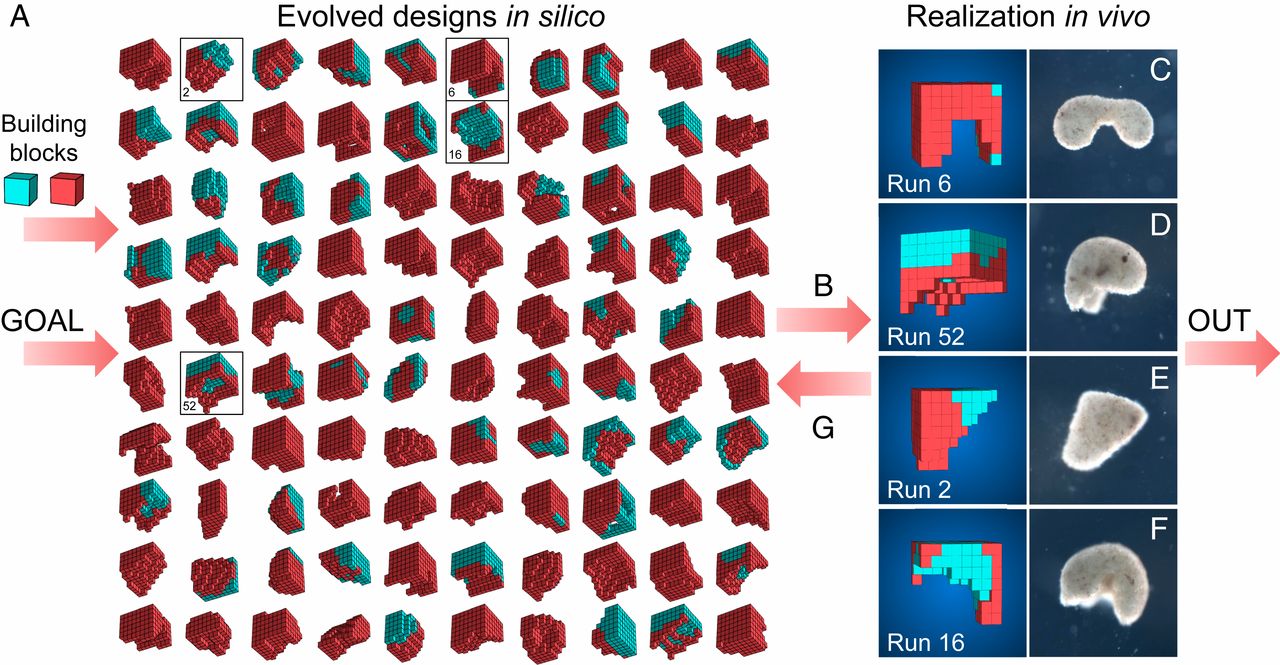 - Po nespočetnom množstve generácií vedci z Michiganskej univerzity našli dizajn, ktorý bol dostatočne dobrý a hlavne, dal sa reálne vytvoriť z buniek.