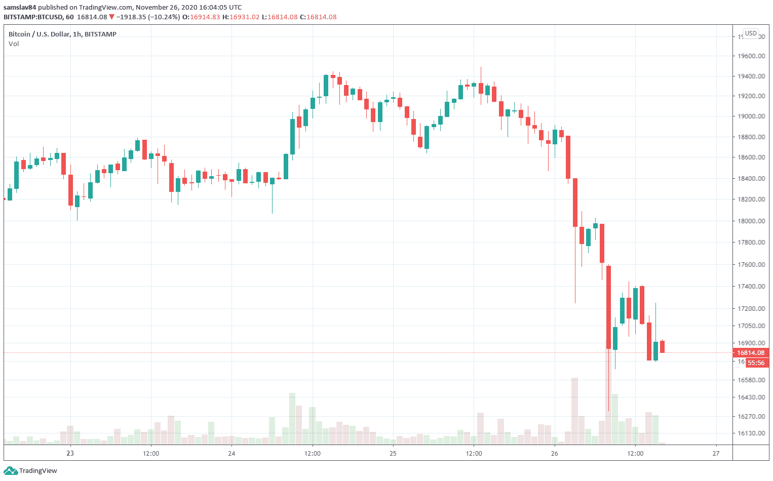 – $163M at 8am UTC#Bitcoin pic.twitter.com/iVmD4TXCpZ— glassnode (@glassnode) November 26, 2020