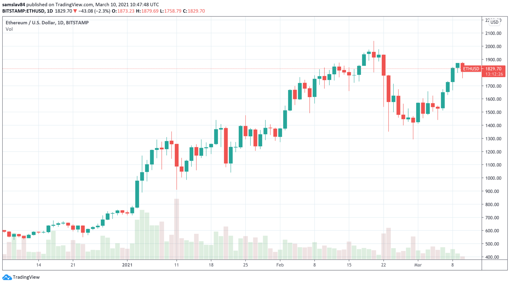Cena Etherea po nepresvedčivých dvoch týždňoch opäť stúpa a dokonca percentuálne prekonáva aj Bitcoin! Kapitalizácia tejto kryptomeny nedávno prekonala 200 miliárd dolárov a stúpa na nové historické maximum